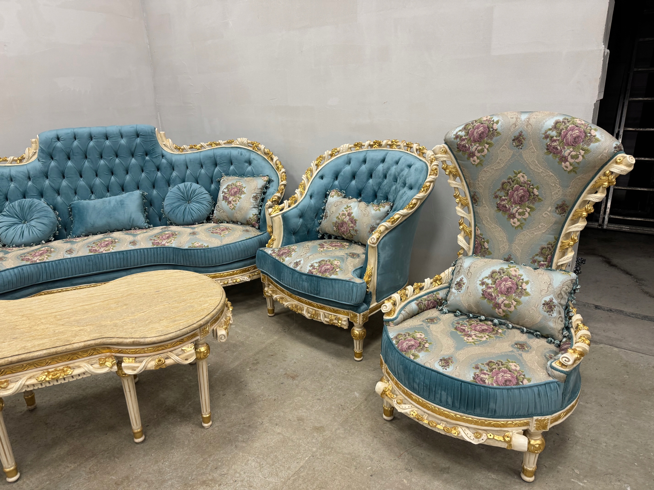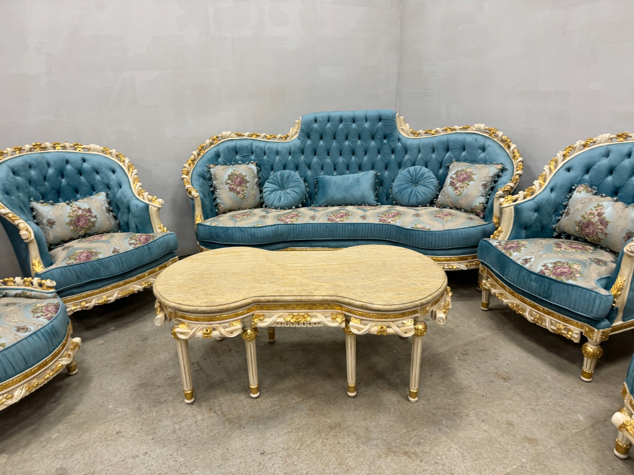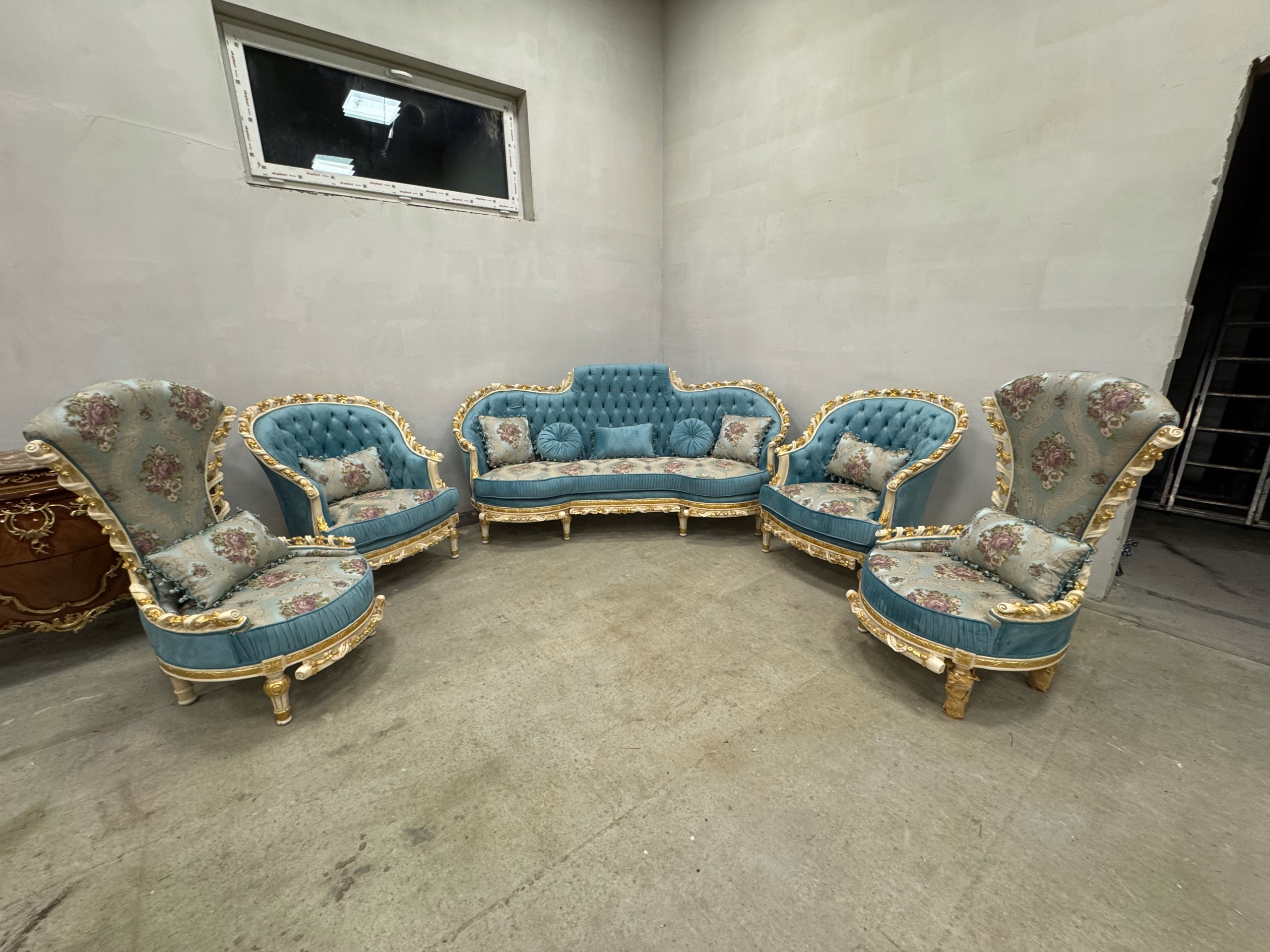 PAŁACOWY -UNIKATOWY -komplet wypoczynkowy NIEBIESKI