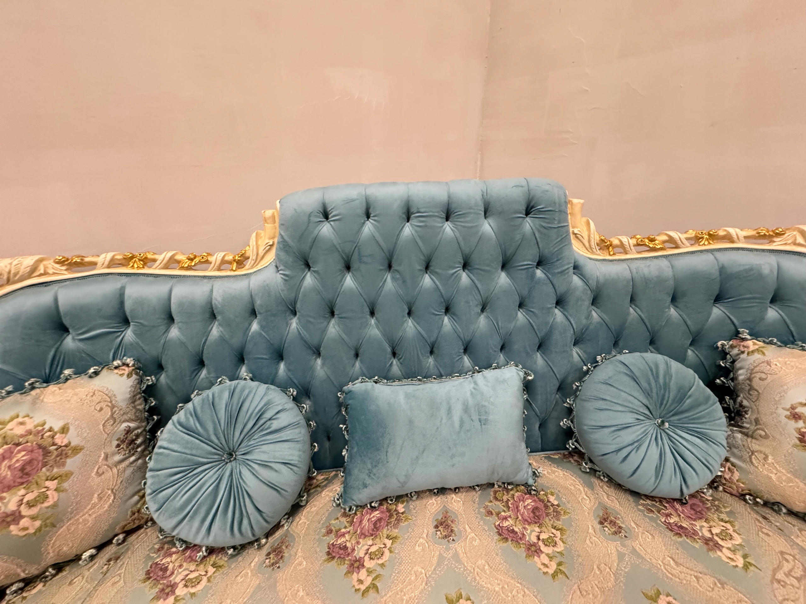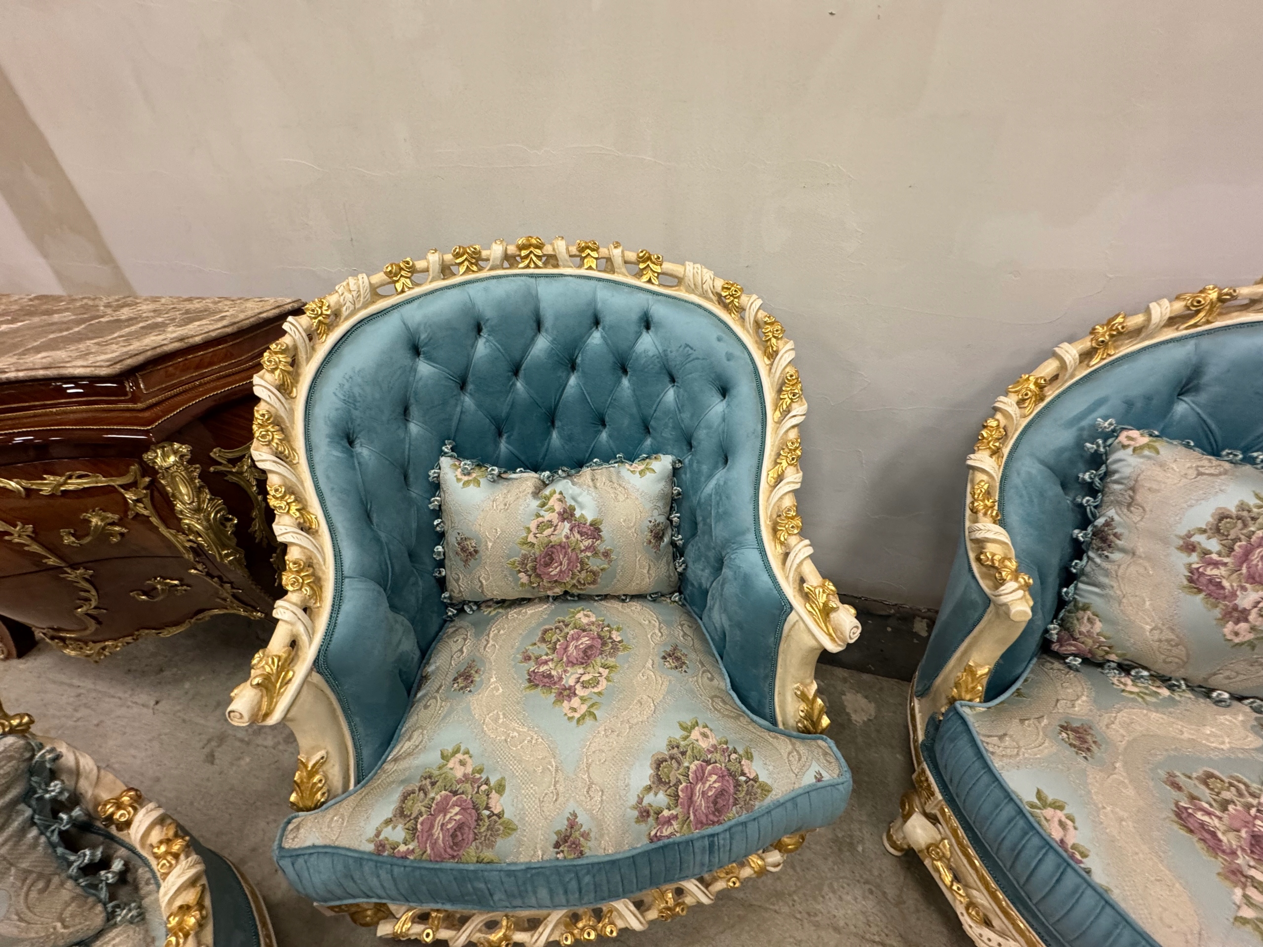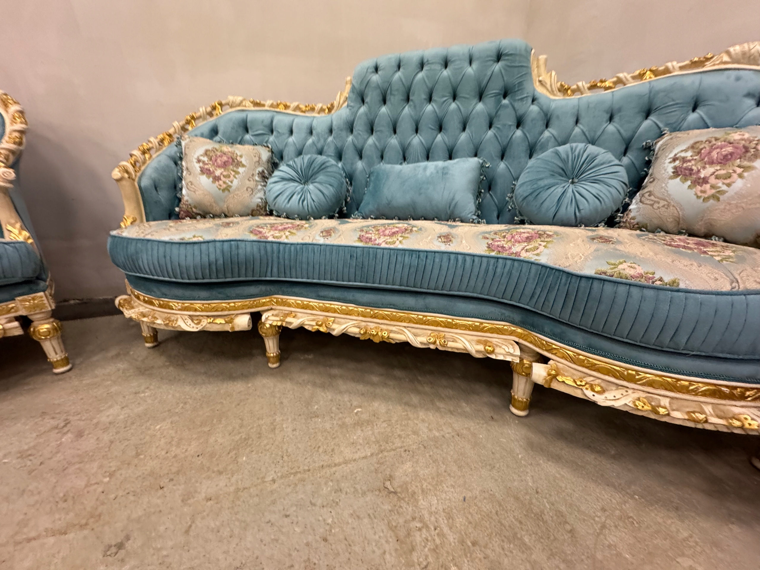 PAŁACOWY -UNIKATOWY -komplet wypoczynkowy NIEBIESKI