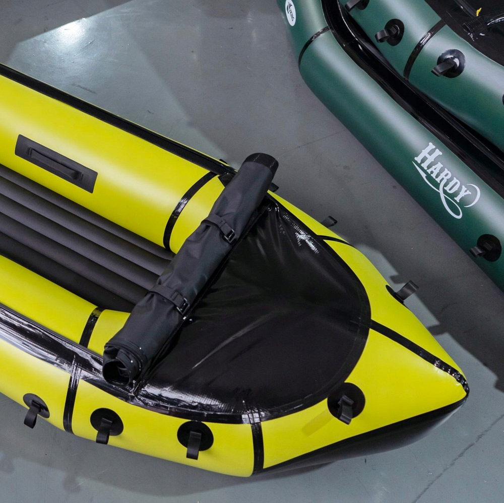 Vking Hardy оснащен очень практичной водонепроницаемой палубой, интегрированной с фартуком, которая предотвращает попадание воды внутрь. С одной стороны дека застегивается на плотно прилегающую липучку, а с другой – на водонепроницаемую молнию. Вы непременно оцените его присутствие во время высоких волн, бурной горной воды или просто под дождем. Когда палуба не используется, она остается свернутой в носовой части, где для ее крепления имеются специальные ремни с пряжками. Деку также можно снять, если вы хотите максимально уменьшить вес.
