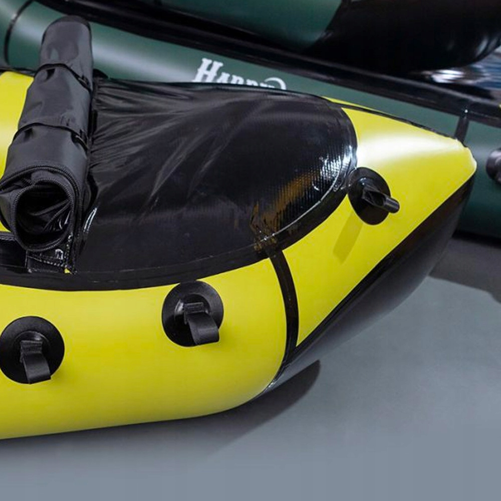 - Пакрафт Grizzly Plus оснащен двумя съемными ручками. Эти ручки, расположенные на носу и корме, облегчают спуск и перетаскивание по водной поверхности. На суше их можно использовать для переноски пакрафта на двоих.