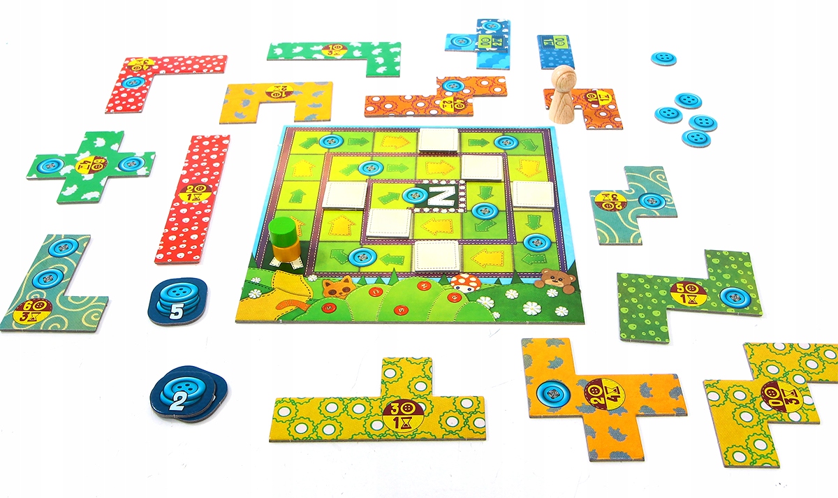 Patchwork Express - это независимая игра, которая привносит оригинальную пэчворку игры на свою базу. Благодаря этому и из -за больших размеров токенов и более низких чисел он отлично подходит для детей дошкольных учреждений и пожилых людей.