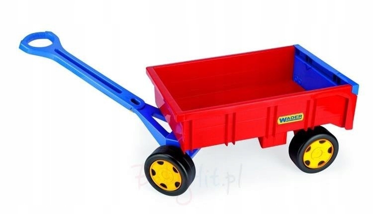Троллейпинга - Wader WA 10950 Трейлер: - Сплошная, безобидная тележка, подходящая до 60 кг, - это мечта каждой небольшой строительной машины: - Палка, которая может быть установлена, превращает коляску в трейлер; - построен из пластика хорошего качества, устойчиво к погодным условиям; - Игрупку может храниться в течение года в одном месте, например, в саду или на балконе.