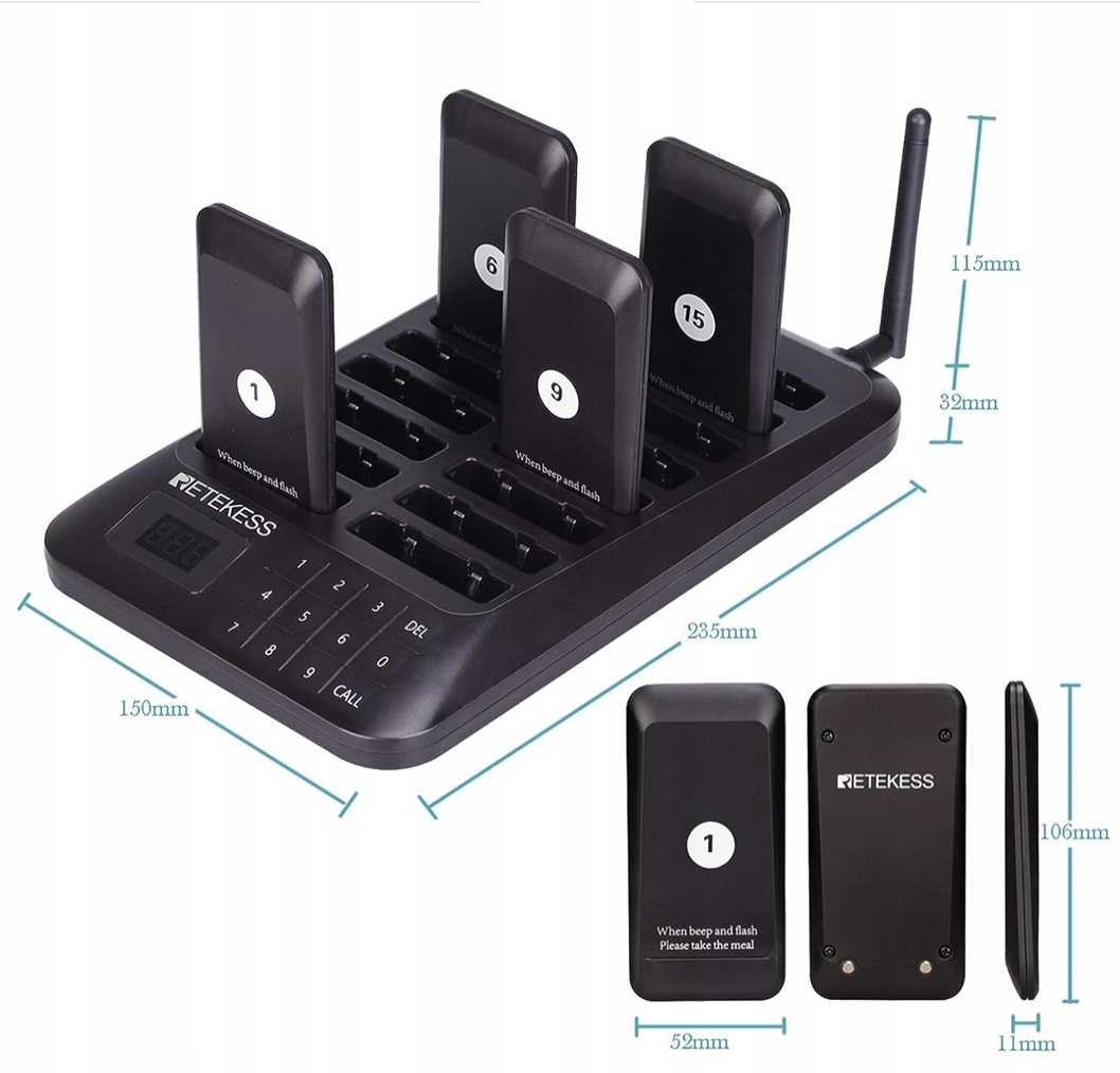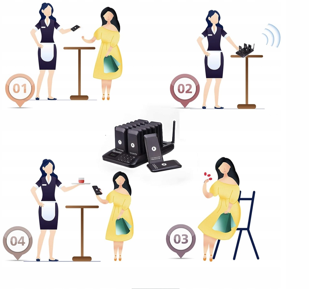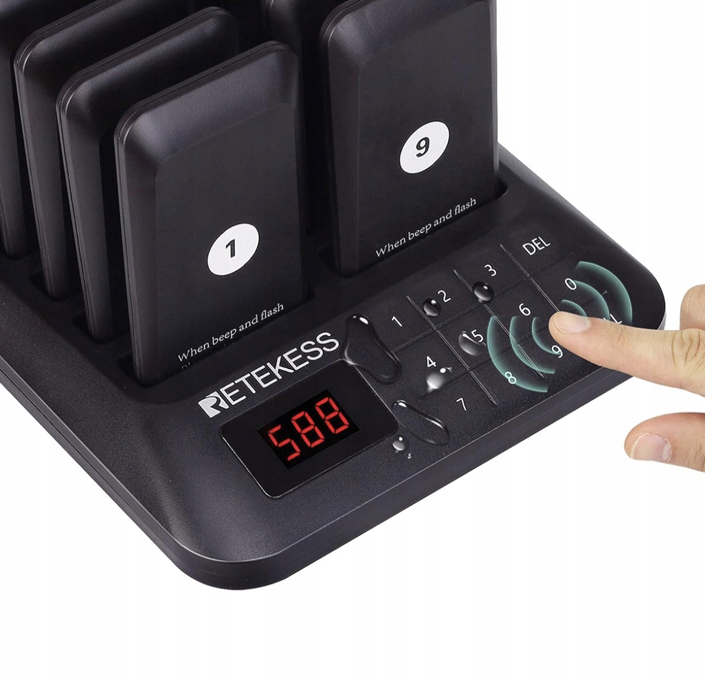 PAGER PRZYWOŁYWACZ KLIENTÓW RESTAURACJA ZESTAW 16 SZTUK KLAWIATURA DOTYKOWA