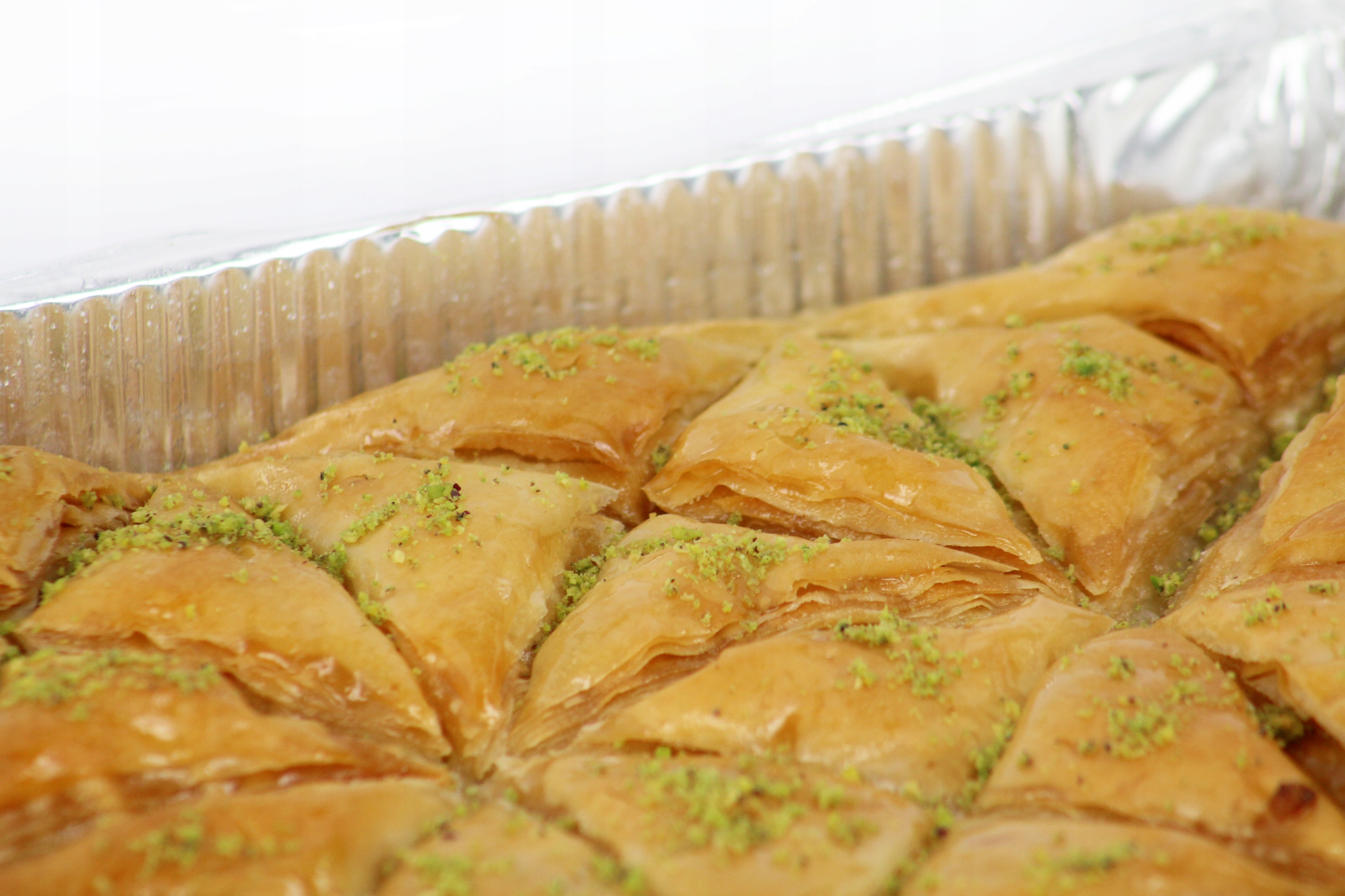 В зависимости от доставки - пахлава имеет форму треугольников или квадратов.