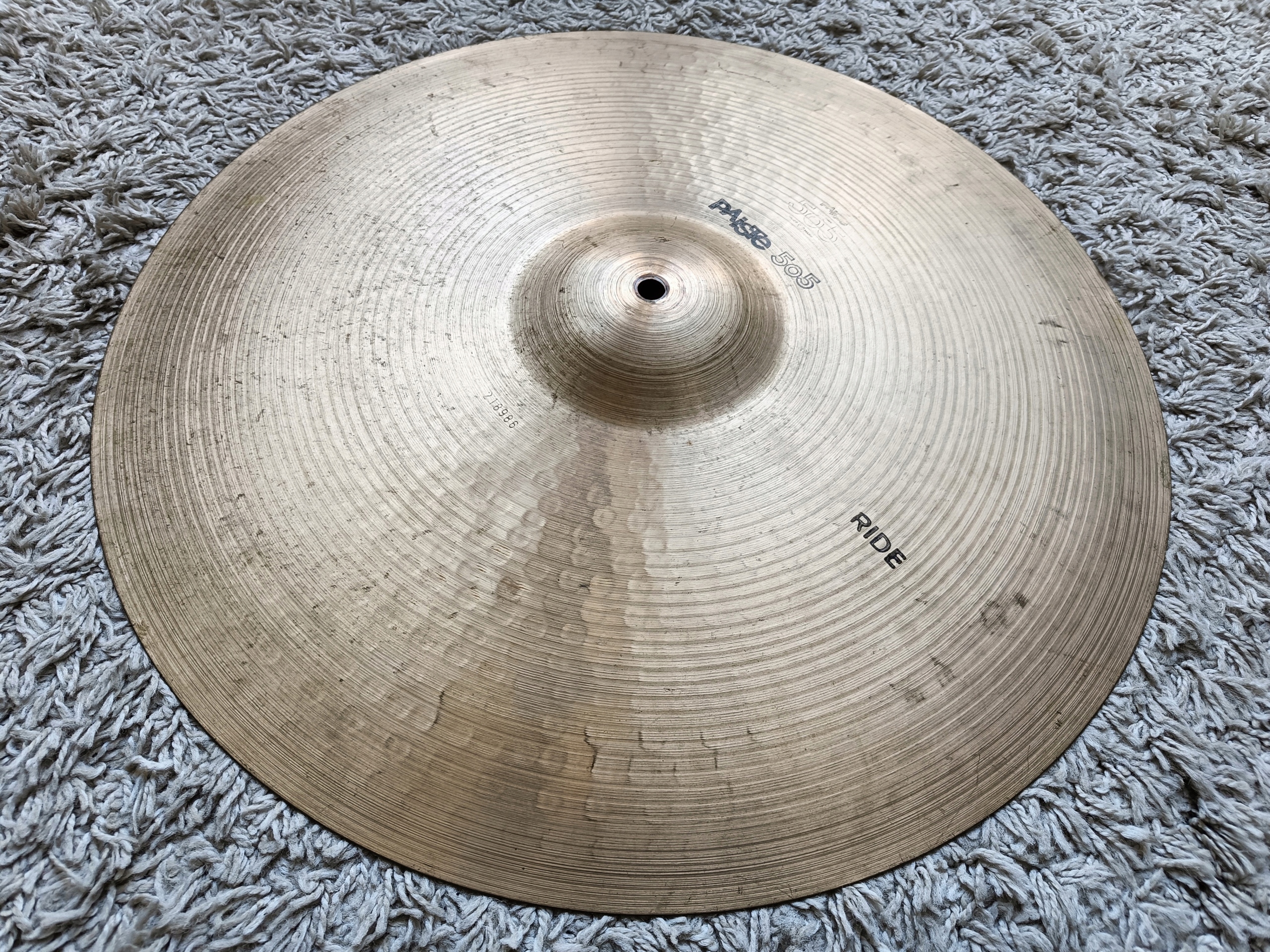 PAISTE 505 BLACK LABEL RIDE 20" - полностью профессиональная барабанная тарелка, изготовленная из фирменного сплава производителя "CuSn8". более известная как бронза 2002 года. Серия 505 является достойным преемником профессиональной серии Satmbul, она производилась в 1978-1993 годах в Швейцарии и Германии с использованием тех же технологий, что и легендарная серия 2002 года, любимая и ценимая барабанщиками всего мира, именно этот экземпляр родом из 1980 года, редкая и востребованная серия на вторичном рынке.