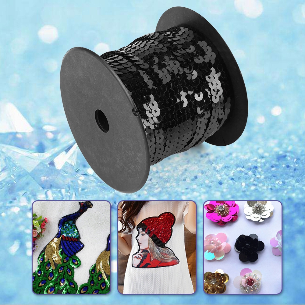 . ЛЕНТА С ПАЙЕТКАМИ НА ЛЕНТЕ 6мм ЧЕРНАЯ 100М