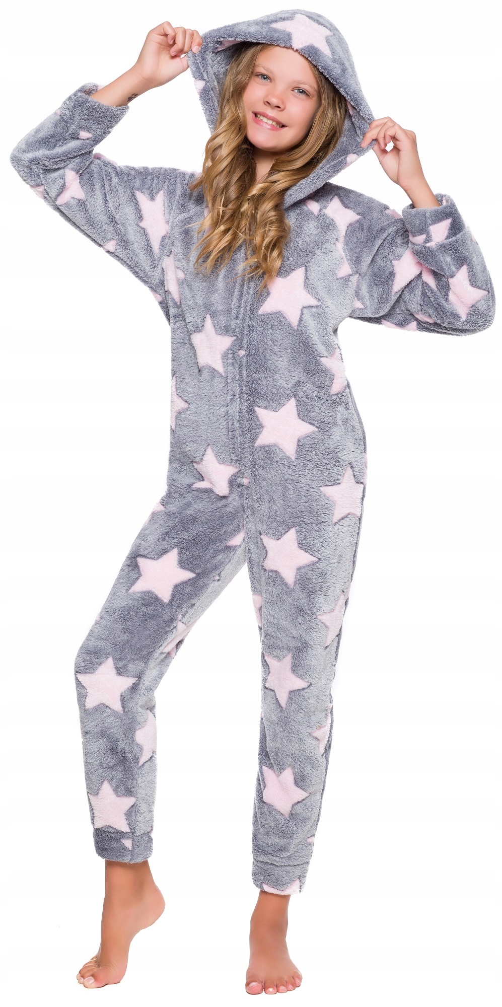 мягкий в целом с капюшоном. На молнии. Пижама с практическими карманами. В целом в звездах