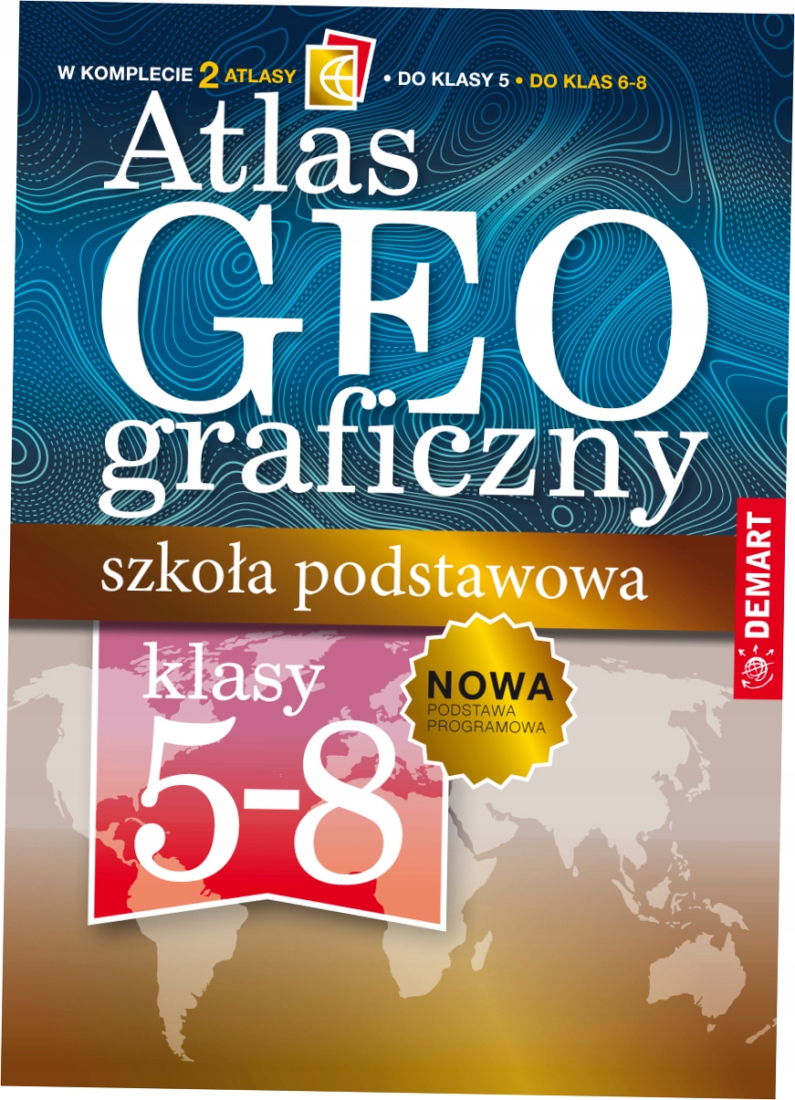 Географический атлас для начальной школы представляет собой пакет из 2-х атласов, в котором содержится множество заданий. Прежде всего он должен научить читать и работать с картой. Именно поэтому для 5 класса был создан отдельный атлас – картографический букварь, без которого трудно идти дальше. Он включает пояснения: как создаются карта и план, как пользоваться масштабом и какие методы используются для представления данных на картах и диаграммах. В этом атласе карты Польши и мира адаптированы к потребностям младших школьников.