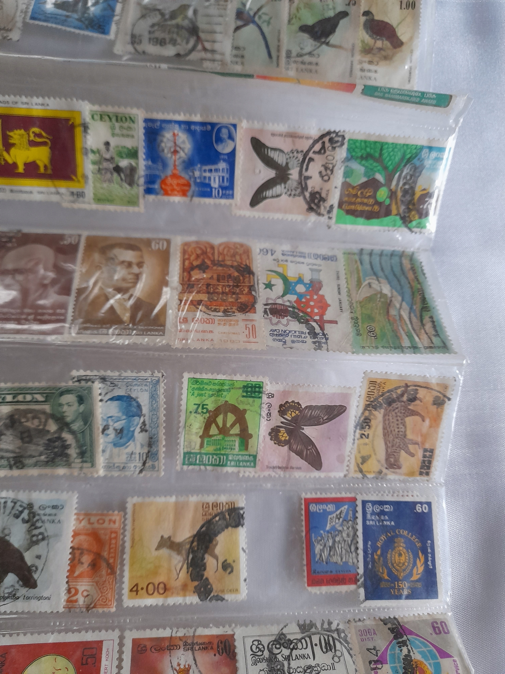 ПАКЕТ С ЦЕННОЙ КОЛЛЕКЦИЕЙ ИЗ 100 ШТ. МАРОК ШРИ-ЛАНКИ. Все показано на фотографиях. Состояние как на фотографиях.