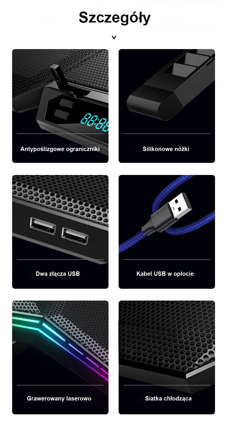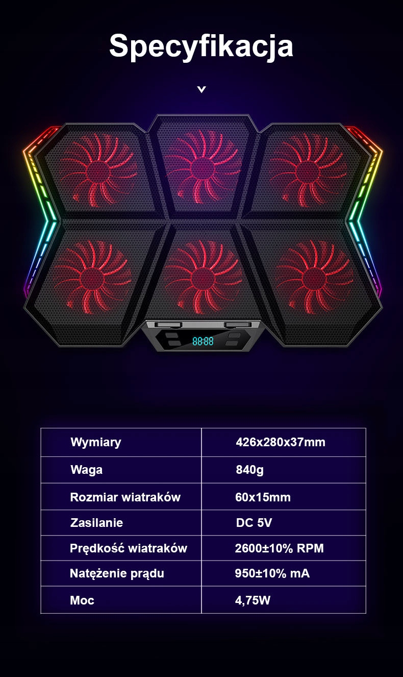 Подставка для ноутбука представляет собой в первую очередь современный вид, стабильный дизайн и эффективная вентиляционная система с возможностью регулировки скорости. Расположение вентиляторов обеспечивает превосходное и эффективное охлаждение ноутбука независимо от местоположения компонентов ноутбука нагревания (процессор, видеокарта, энергосистемы, жесткие диски). Широкая совместимость с ноутбуками и ноутбуками с различными размерами матриц