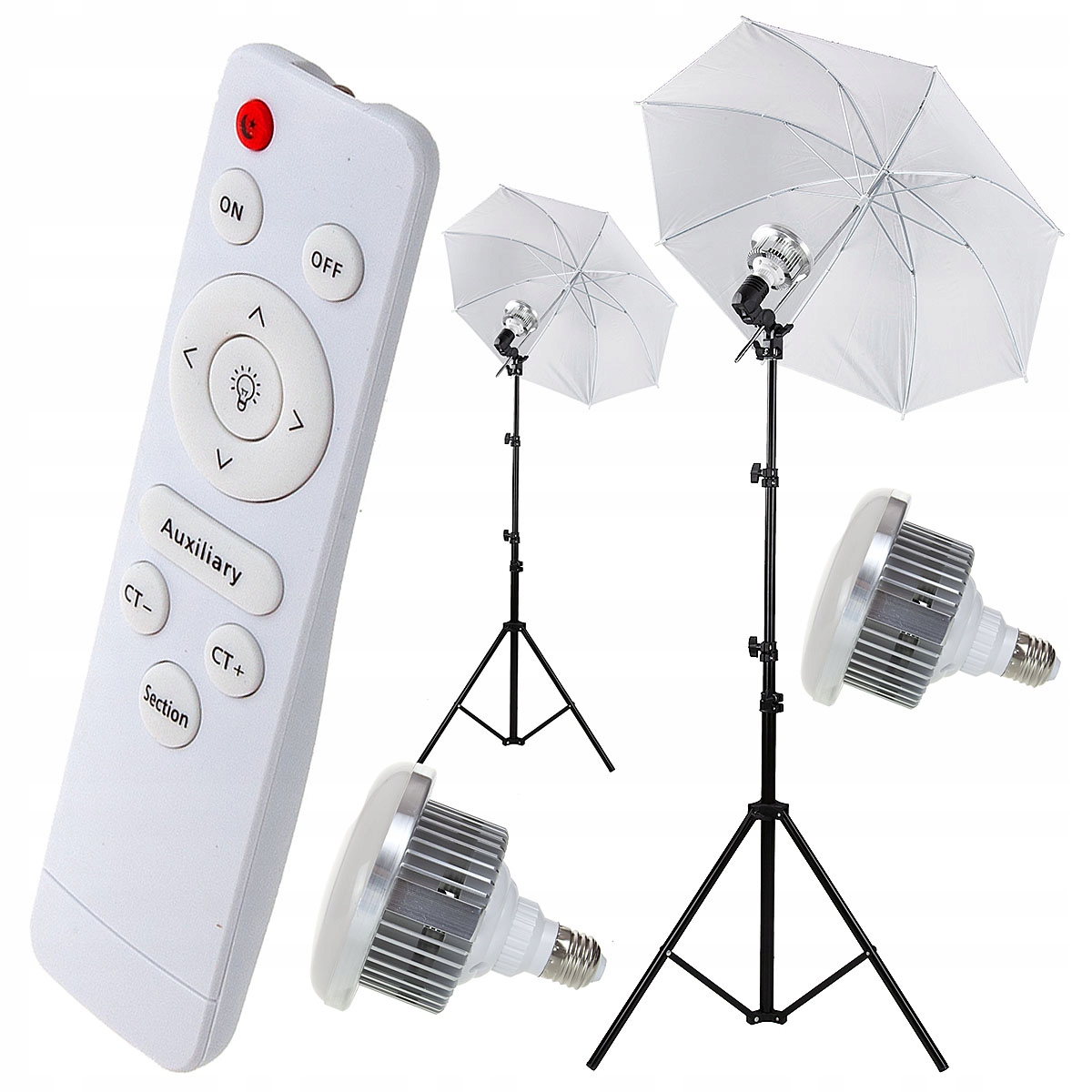 Комплект занимает мало места, обеспечивая при этом высокую светоотдачу. Входящие в комплект пульты дистанционного управления позволяют плавно управлять лампочками, увеличивая и уменьшая мощность света. Это значительно облегчает вашу работу. Вы не будете постоянно приближаться к лампам и перемещать их, чтобы получить необходимую интенсивность света. Управляя пультом дистанционного управления, вы также можете плавно менять цвет света. Установить светильники, лампочки и зонты на штатив очень просто, время сборки быстрое.