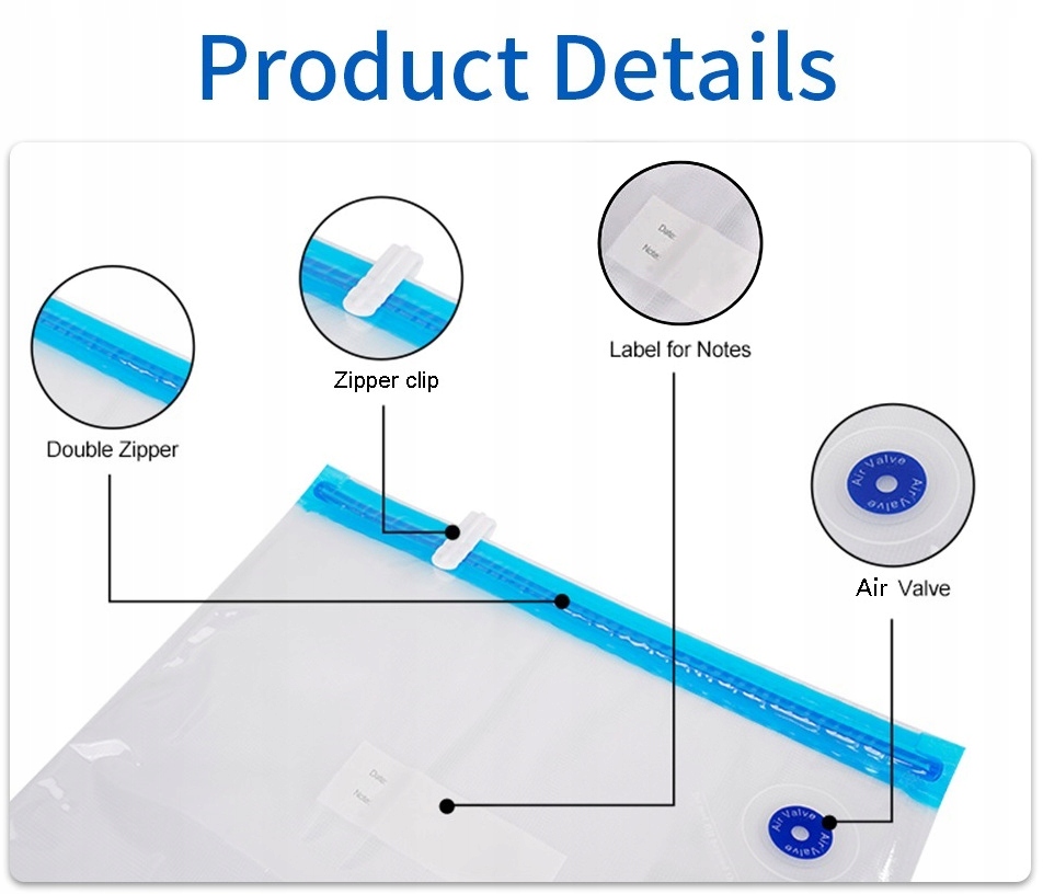 Предлагаемые пакеты имеют двойную, прочную, герметичную молния (застежка), обеспечивающая плотное, многократное использование без ухудшения герметичности.