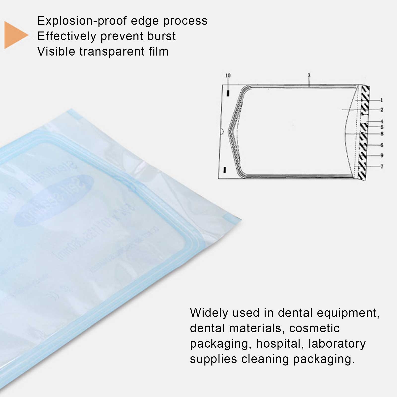 2. Сильная очистка, гигиеническая и прочная бумага, подходящая для зубных инструментов. Безопасное уплотнение, чтобы предотвратить разбивку инструментов резка.