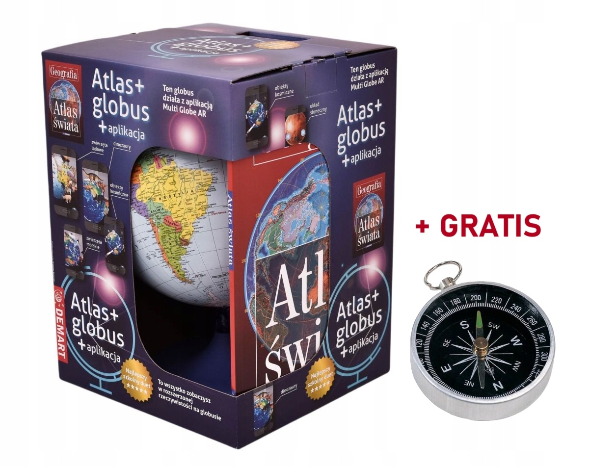 PAKIET 2025 GLOBUS INTERAKTYWNY Z APLIKACJĄ + ATLAS + GRATIS: KOMPAS