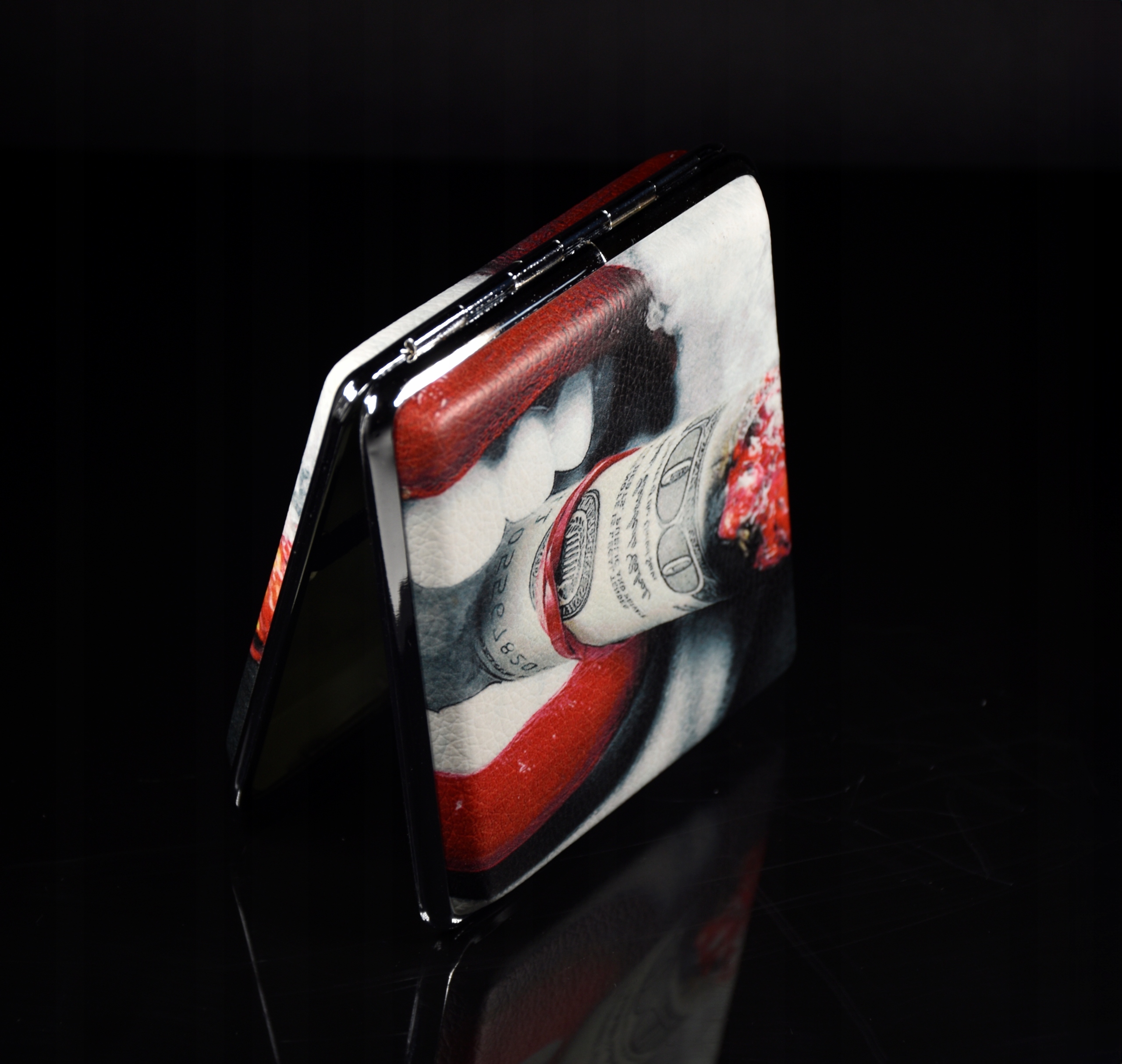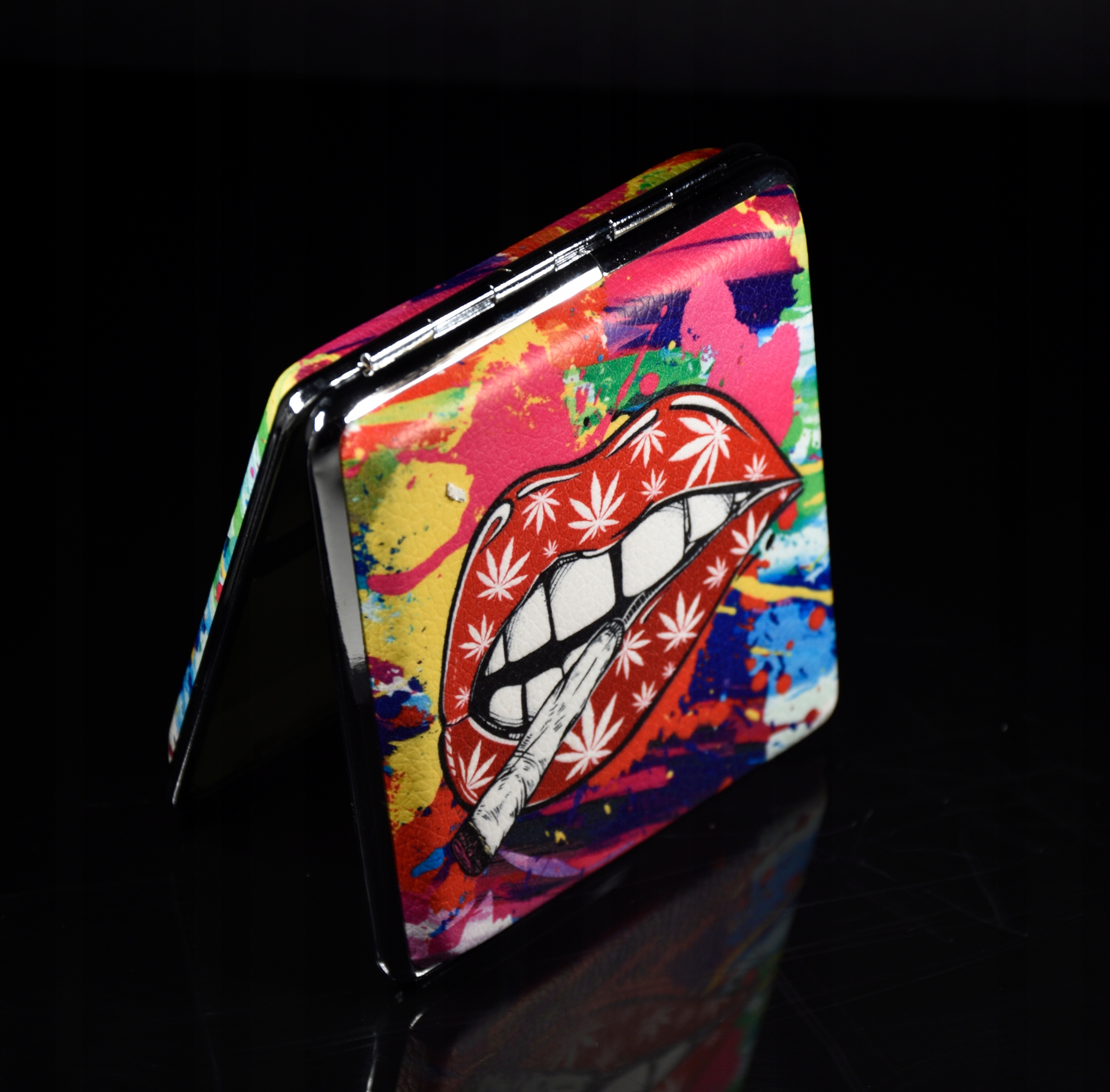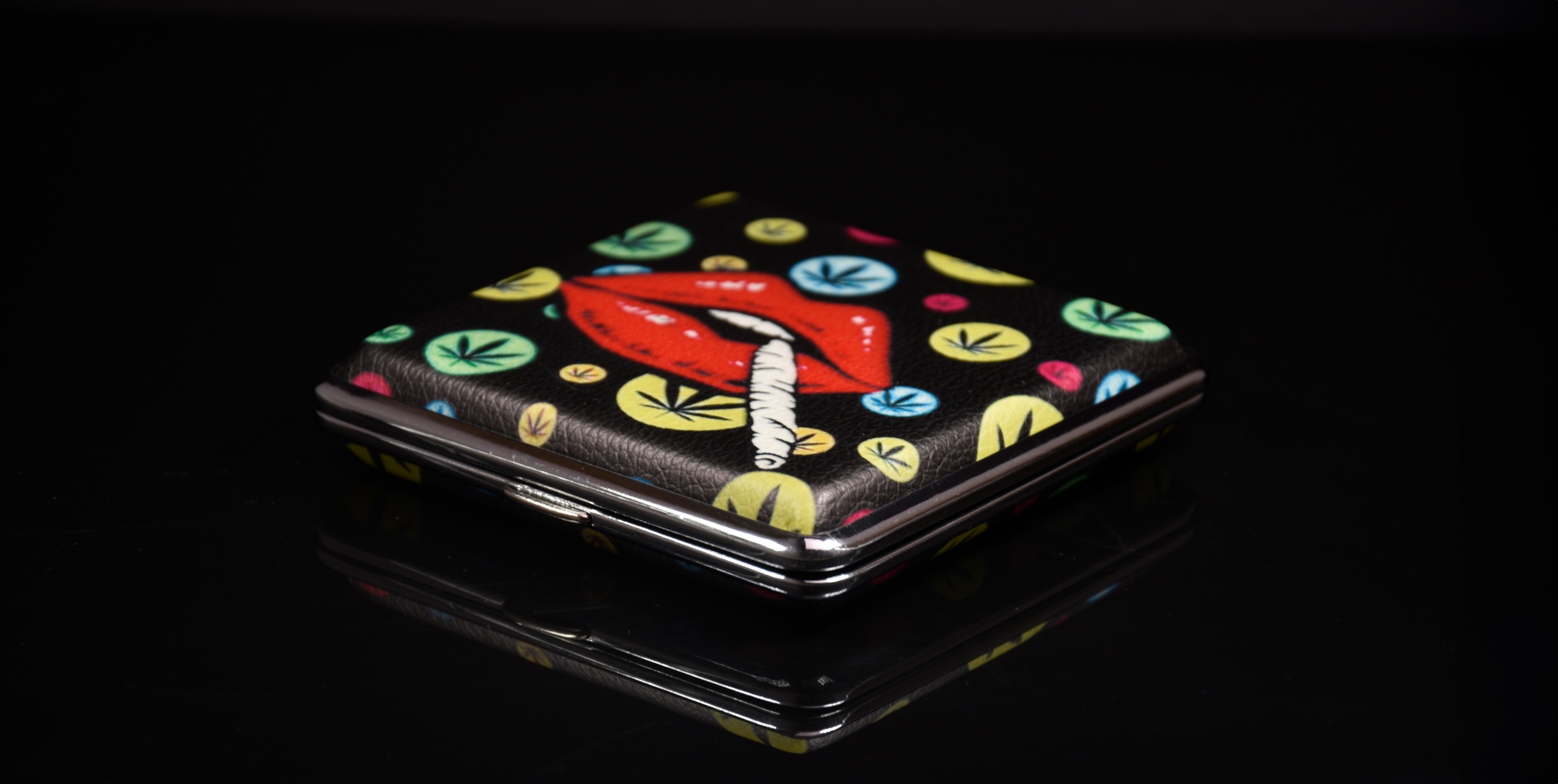 Металлический портсигар, покрытый эко-кожей, с тематикой THC