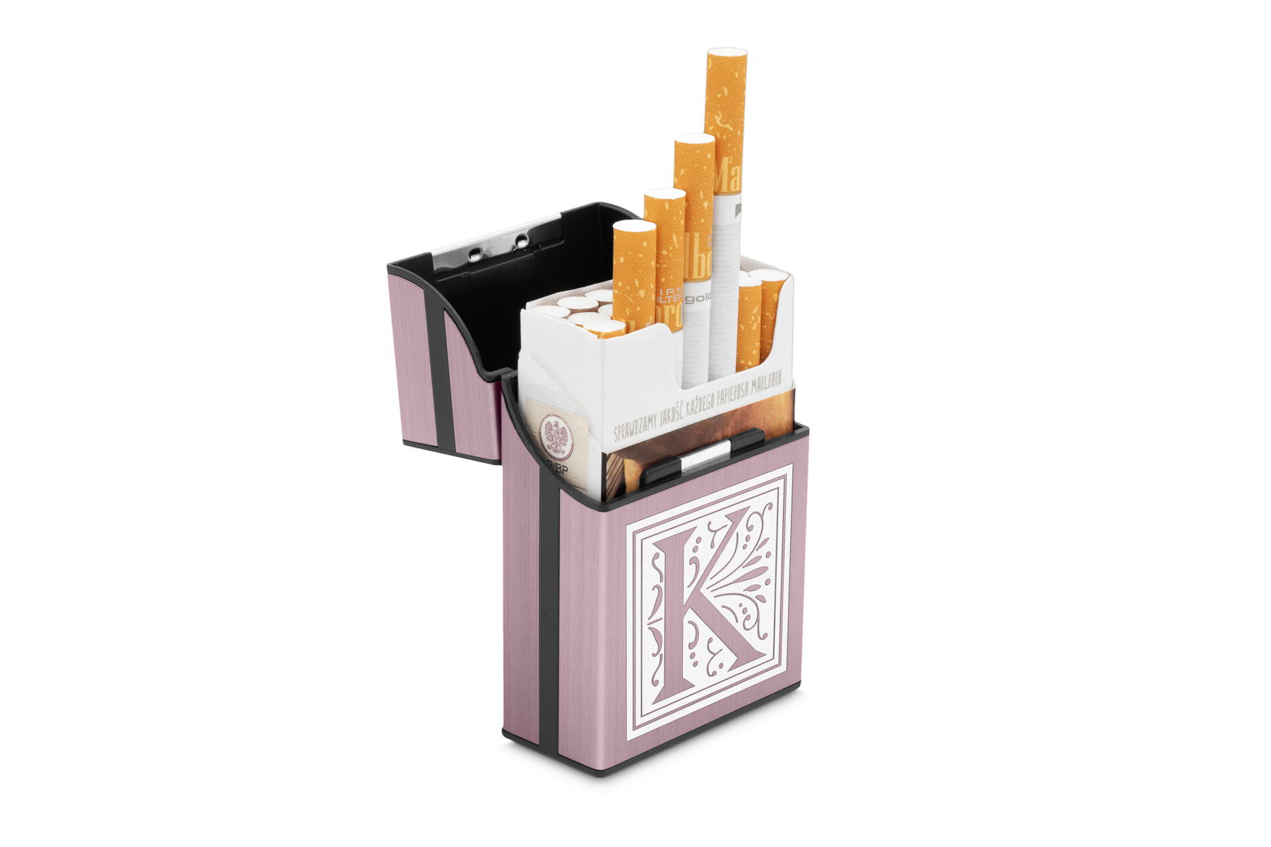 - Вмещает целую пачку сигарет, не вынимая ее.