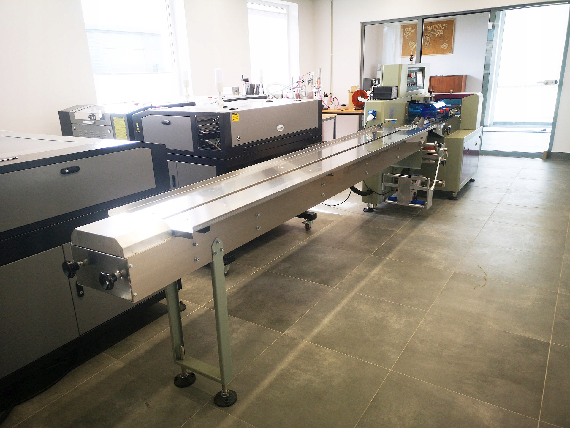 Также мы предлагаем системы, автоматизирующие упаковку продукции в виде автопитателей, конвейеров и т.п.: