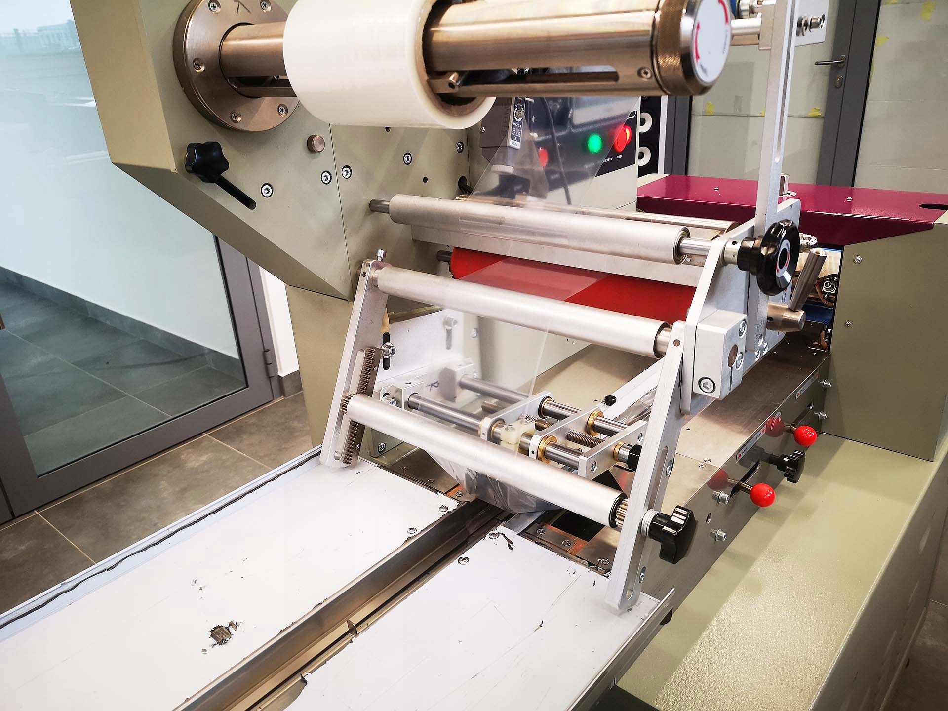 - ПЛК-панель (изменение длины упаковки, изменение скорости упаковки, регулировка положения продукта относительно ножей и т.д.),