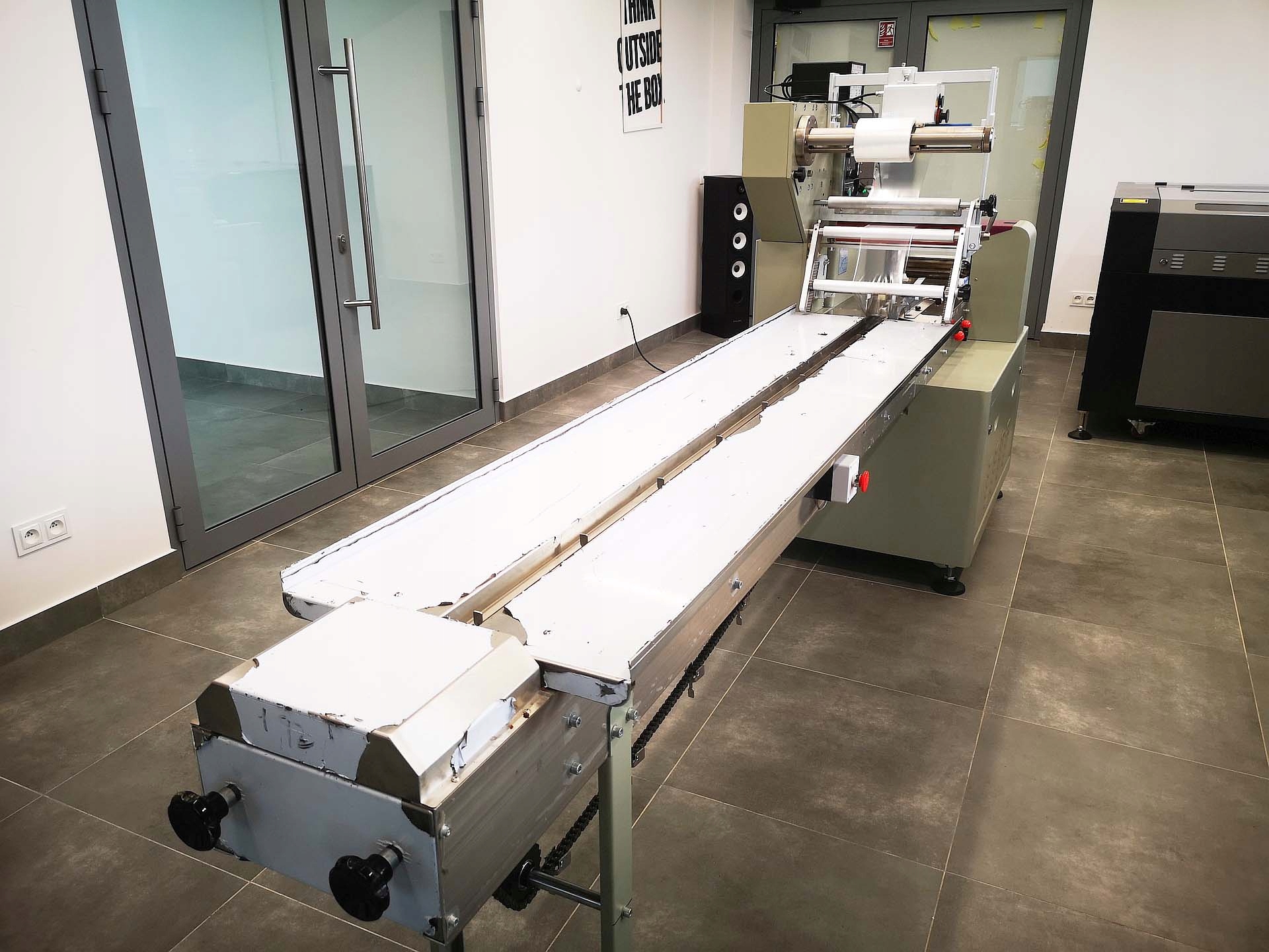 Также мы предлагаем системы, автоматизирующие упаковку продукции в виде автопитателей, конвейеров и т.п.: