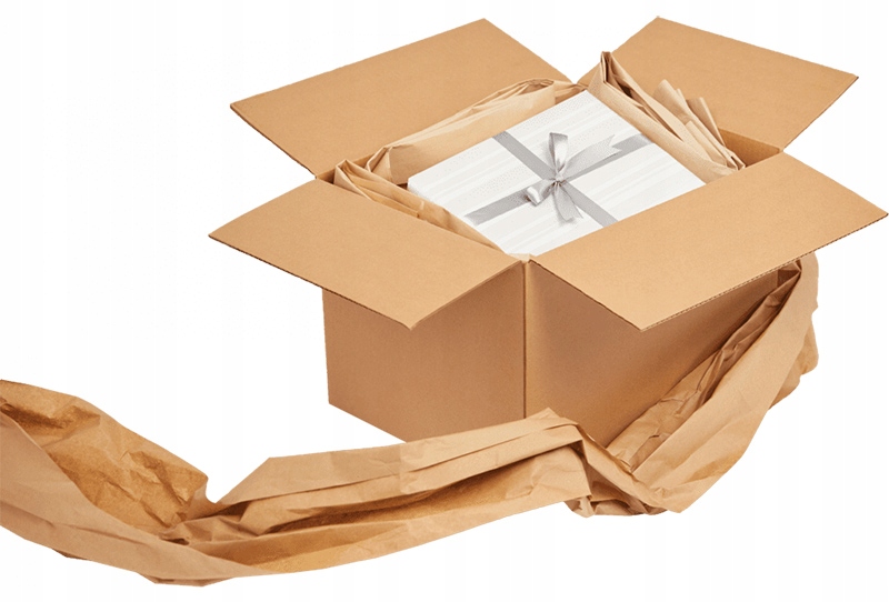Бумажный наполнитель — коробка с упаковочной бумагой; Назначение: благодаря плотной структуре бумаги ее чаще всего используют для упаковки и переноски различных видов продукции, требующей сохранения формы и целостности товара при транспортировке и длительном хранении.