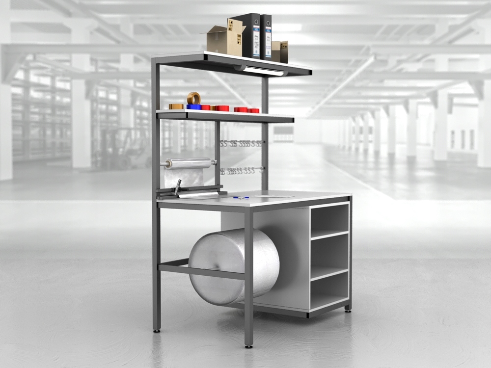 Качественный верстак для упаковки посылок из металлических профилей, сваренных в устойчивую форму.