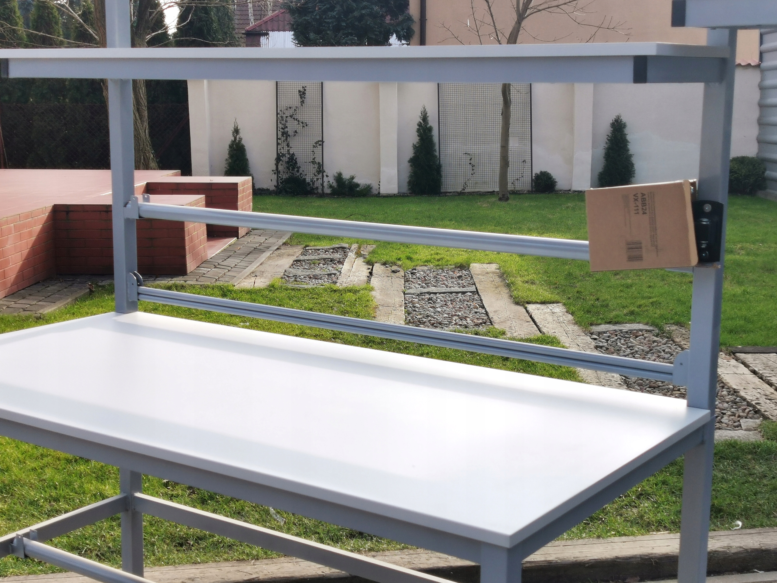 Качественный верстак для упаковки посылок из металлических профилей, сваренных в устойчивую форму.