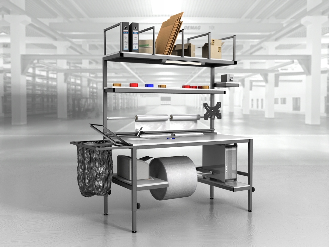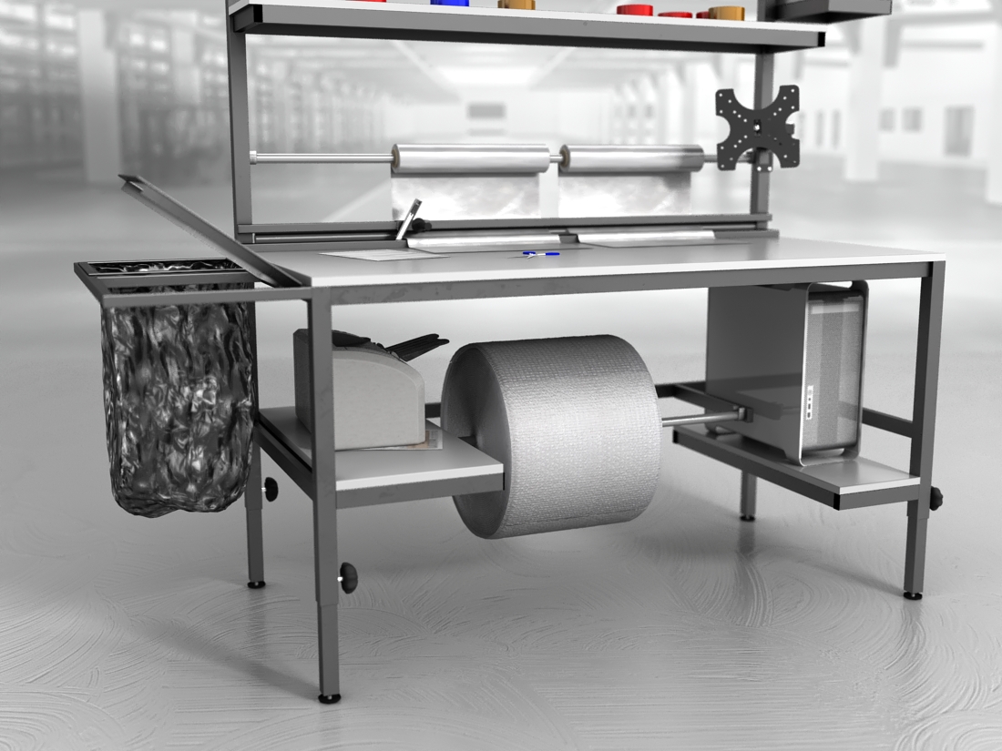 Качественный верстак для упаковки посылок из металлических профилей, сваренных в устойчивую форму.