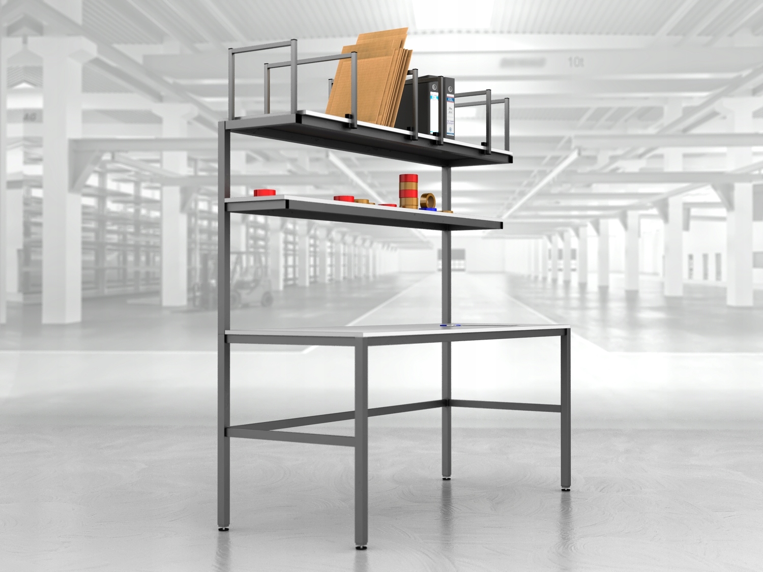 Качественный верстак для упаковки посылок из металлических профилей, сваренных в устойчивую форму.