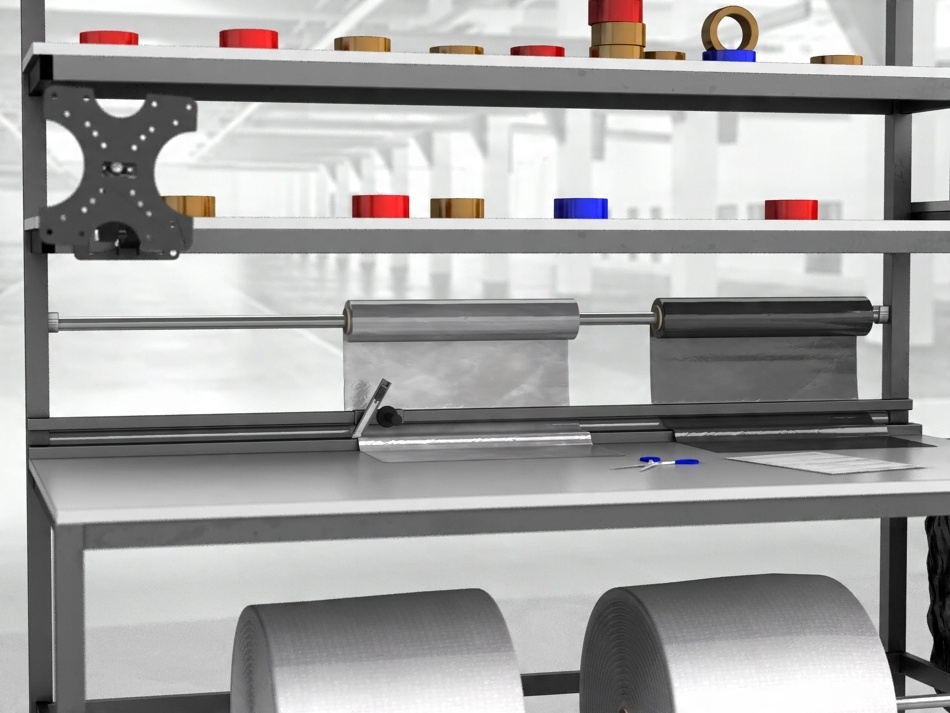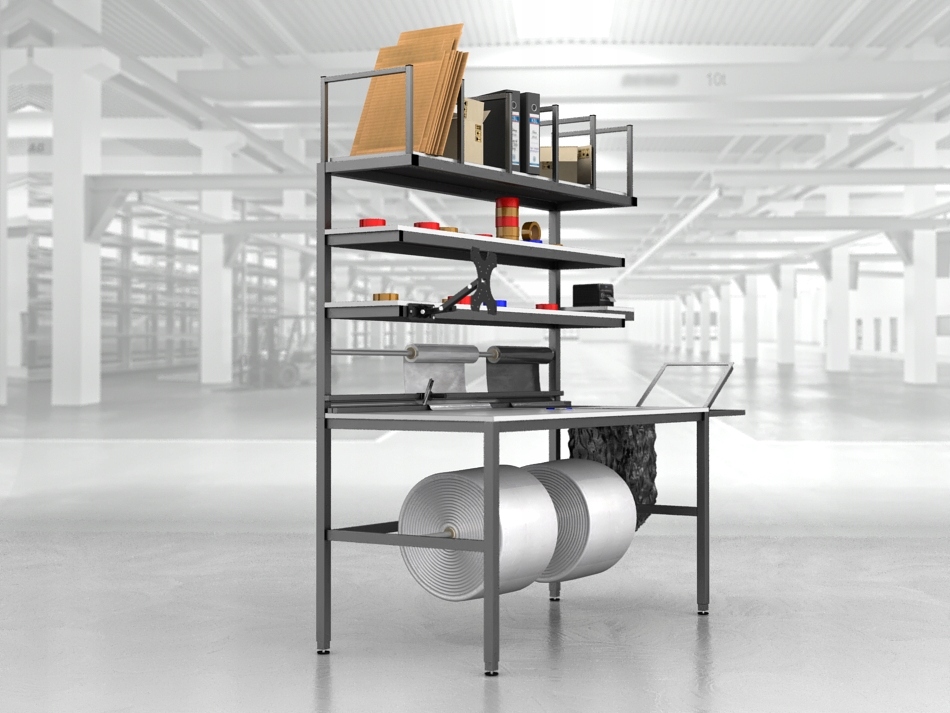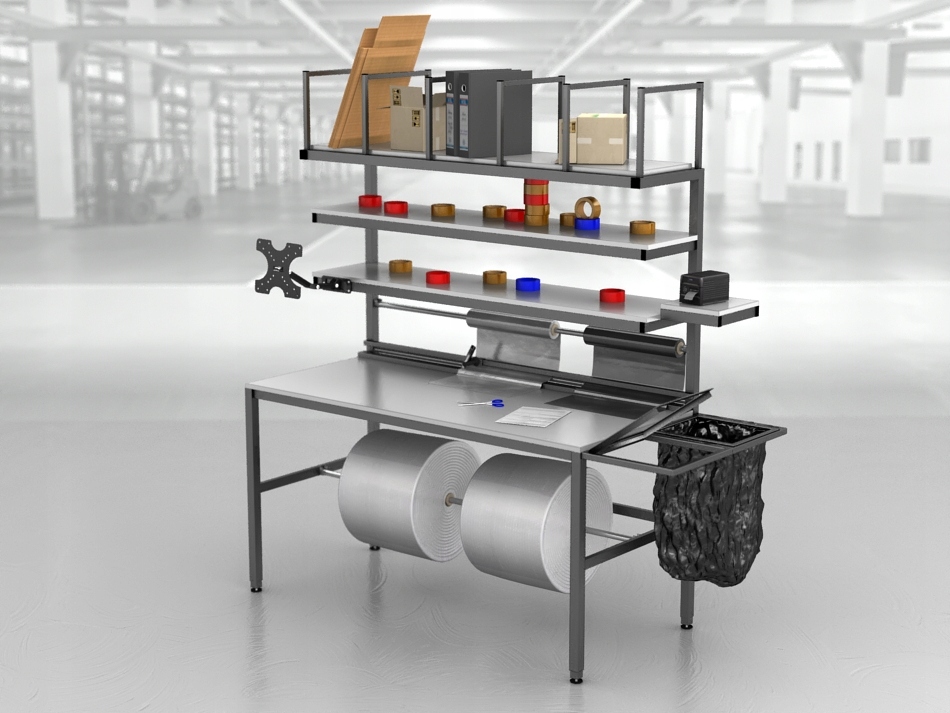 Качественный верстак для упаковки посылок из металлических профилей, сваренных в устойчивую форму.