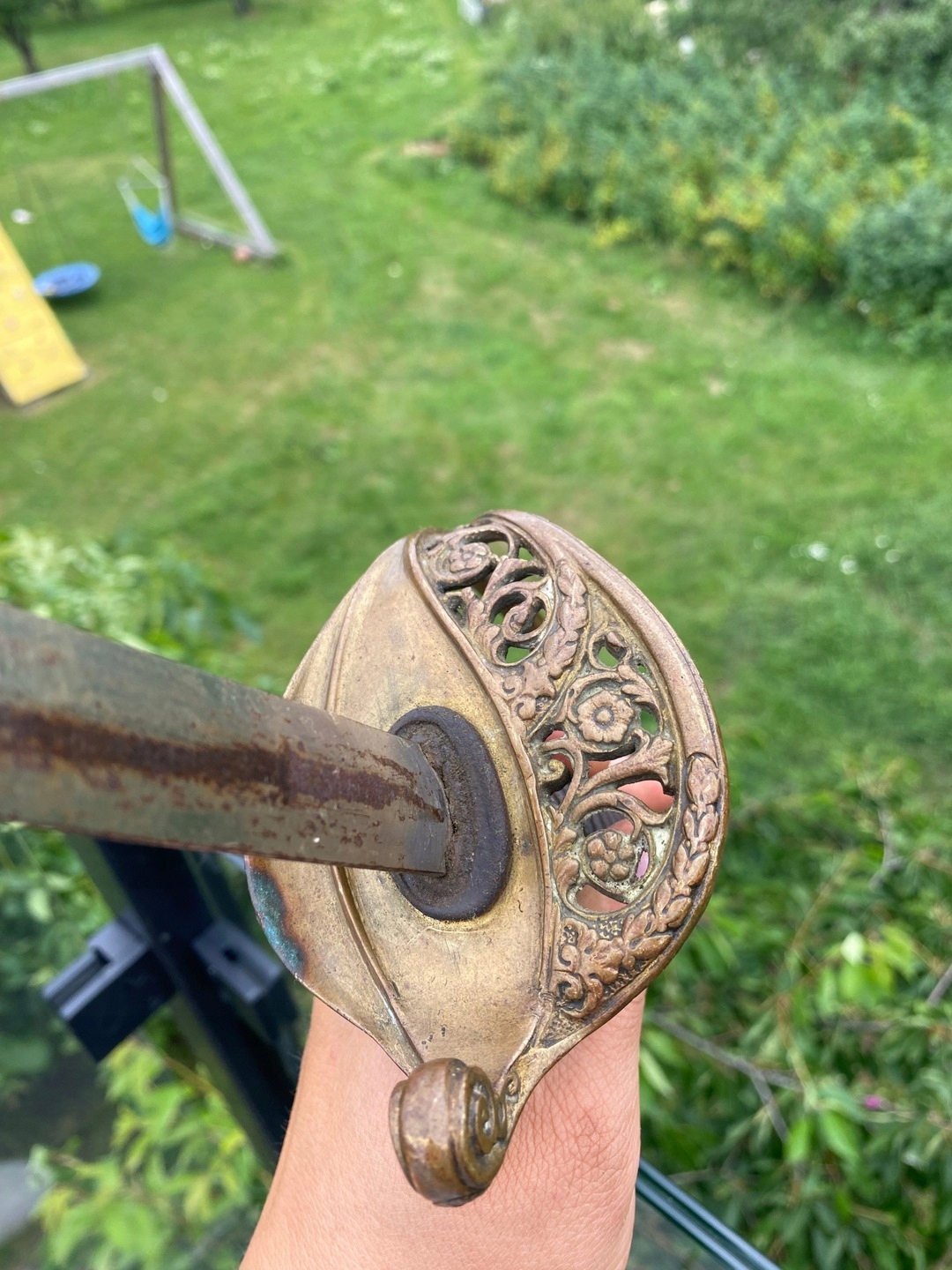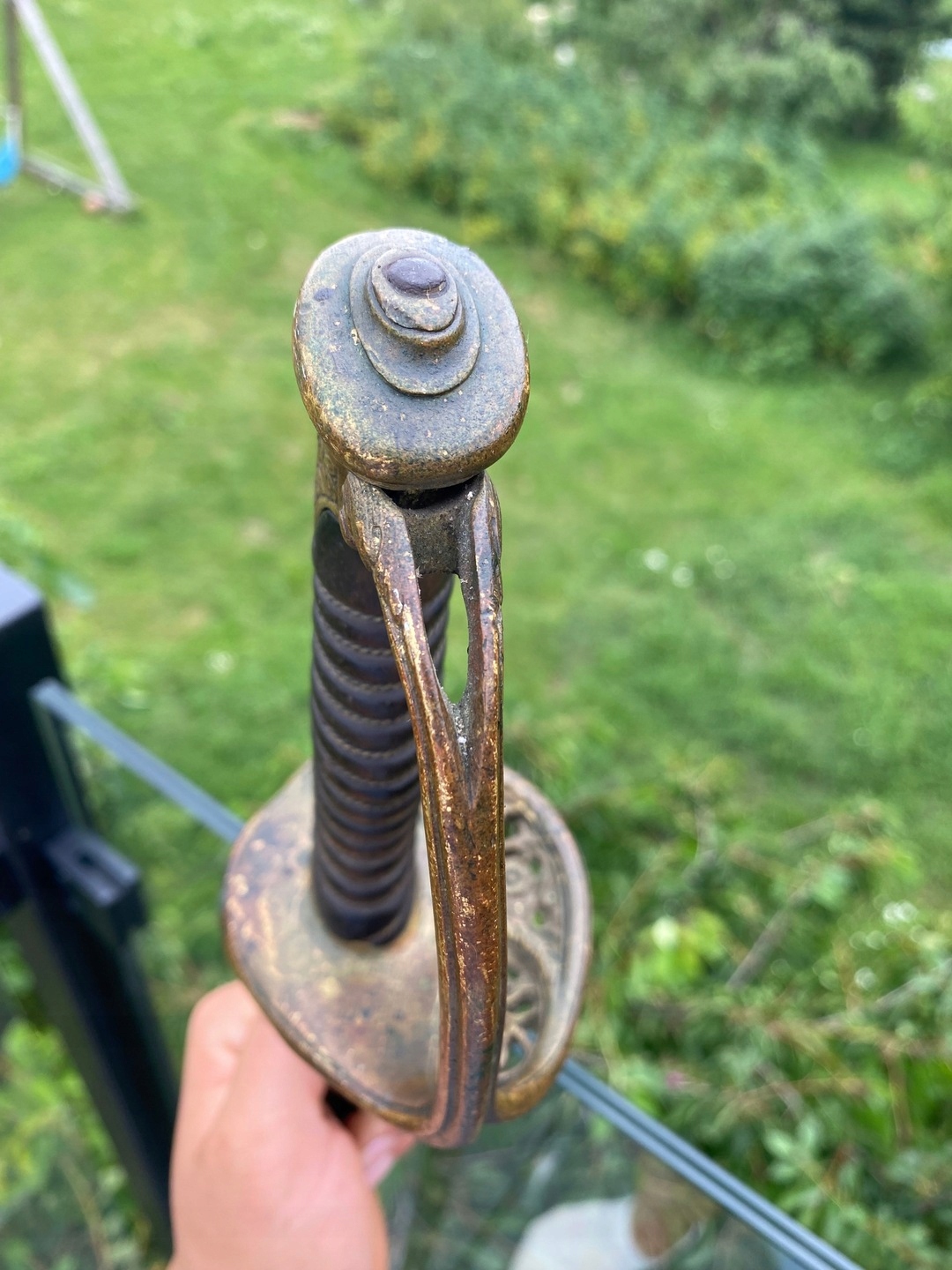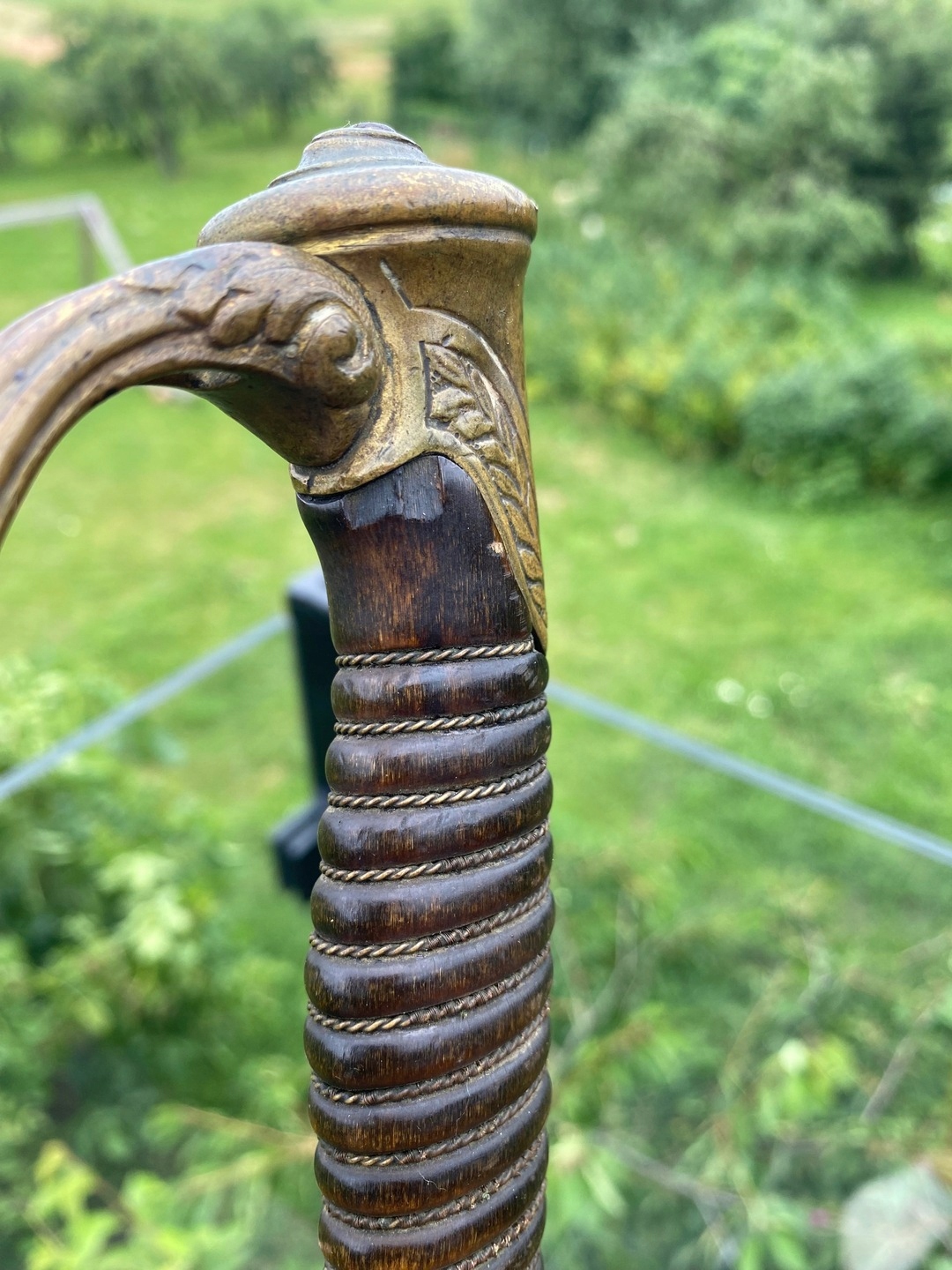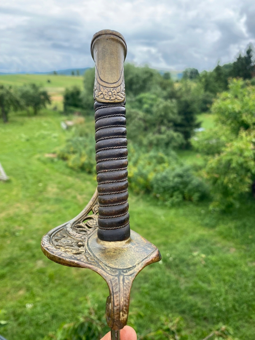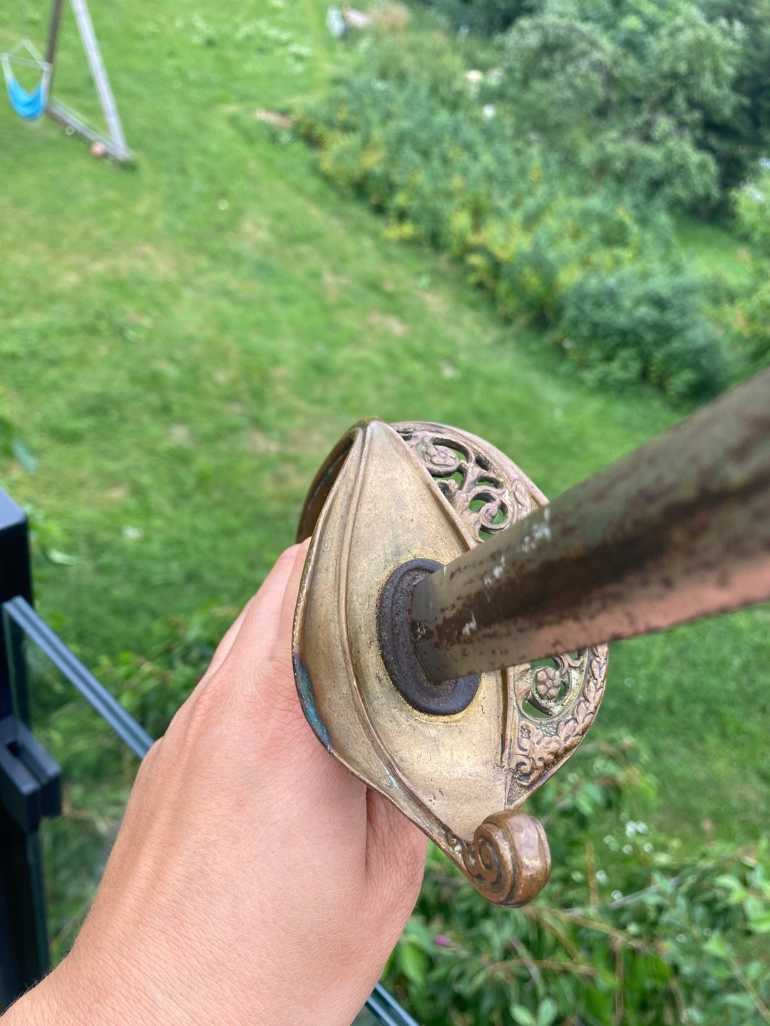 Рукоять из рога - на последнем фото дефект, оплетка из крученой латунной проволоки.