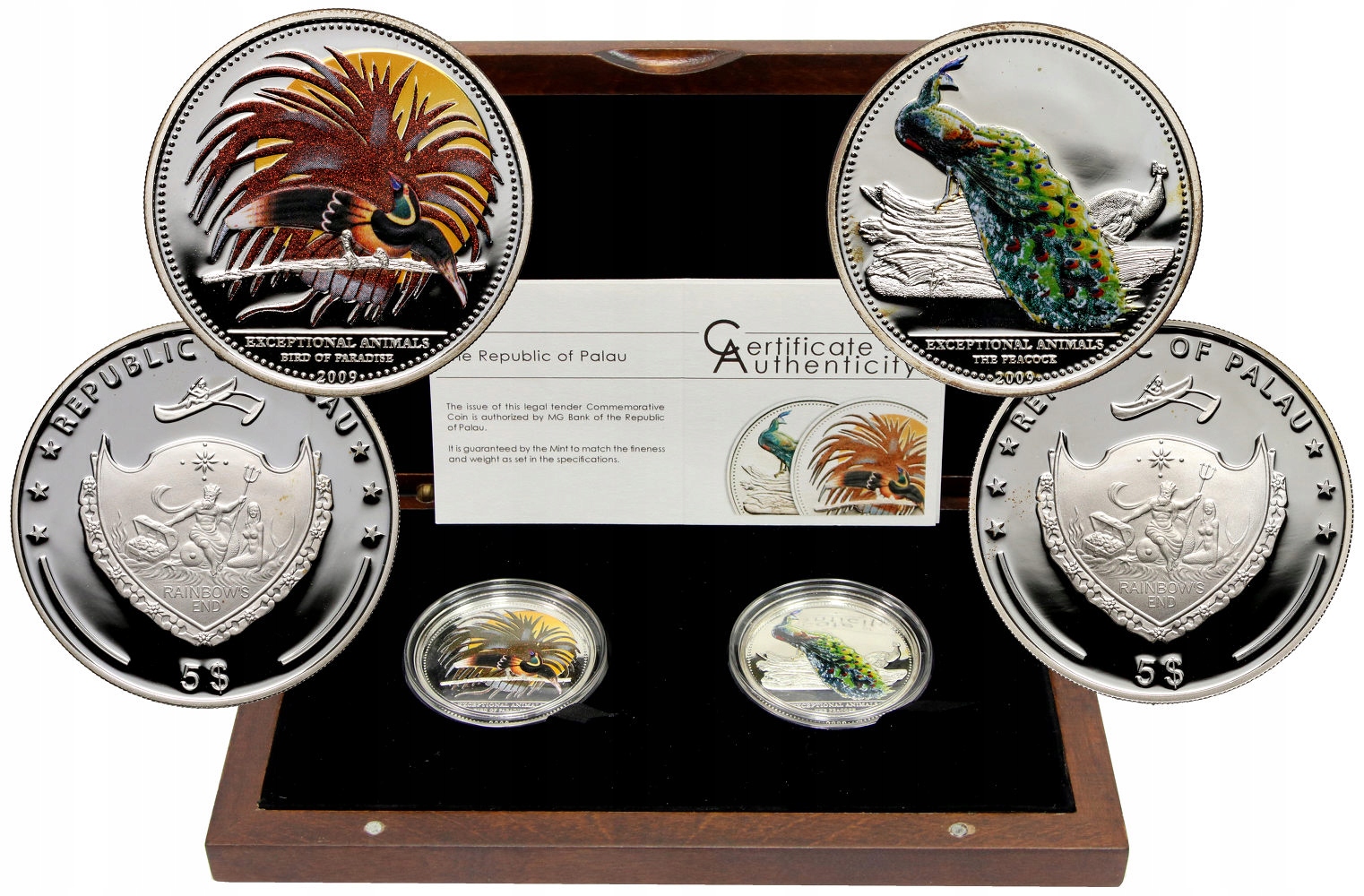 Palau, 2 x 5 dolarów 2009, rajskie ptaki [M]