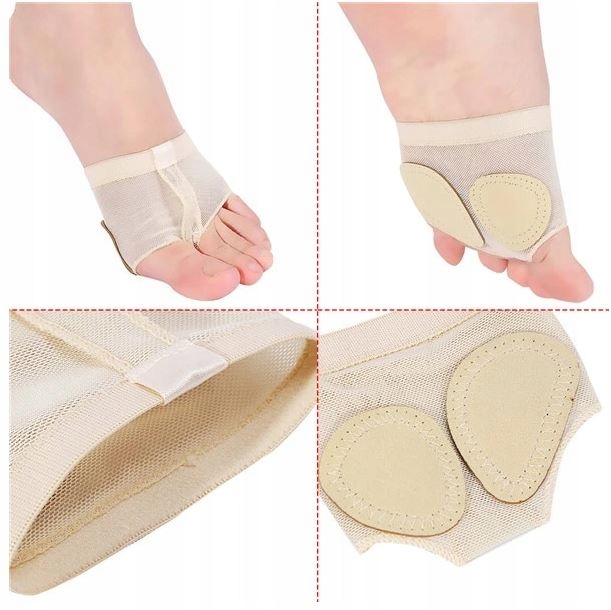 Туфли без пальцев изготовлены из эластичной сетчатой ткани и экологической кожи. Защищают ноги от травм во время тренировок по танцам и гимнастике.