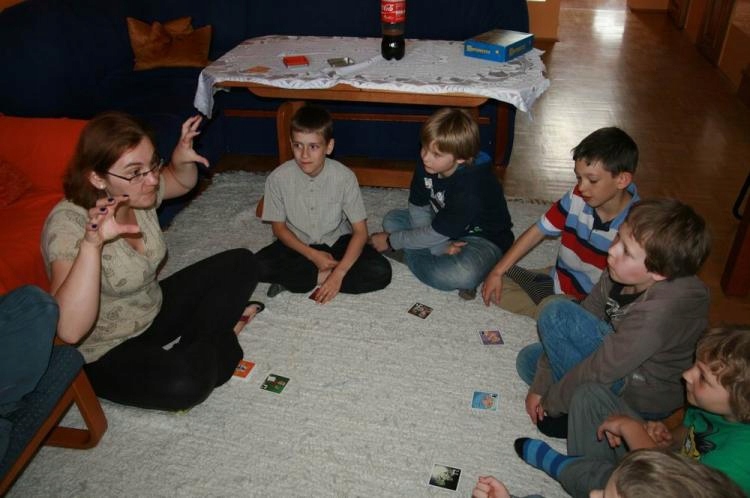 Чтобы сыграть в «Пальцы в стиральной машине», нам нужно как минимум четыре отважных игрока. Перетасовываем колоду и в зависимости от выбранного варианта сложности раздаем участникам одну или несколько карт жестов. В начальных играх, не завышая темпа, задаем ритм – два шлепка по бедрам и один хлопок. Повторяем действия до тех пор, пока не синхронизируемся (в этот момент вечеринка уже будет веселой - о чувстве ритма спорно ). Теперь первый человек начинает «обмен жестами» — то есть два хлопка по бедрам — и вместо хлопка в ладоши показывает свой жест. Затем он снова вместе со всеми бьет себя по бедрам и вместо аплодисментов показывает жест (или один из жестов) любого человека по своему выбору. Выбранный игрок должен быстро понять, что настала его очередь, и после двух ударов по бедрам показать свой жест. Показав всем свой жест, он зовет следующего человека. И так игра продолжается до тех пор, пока не будут розданы все «Шарики». Эти карты игроки получают в случае ошибки. Проигрывает тот, кто соберет больше шариков.