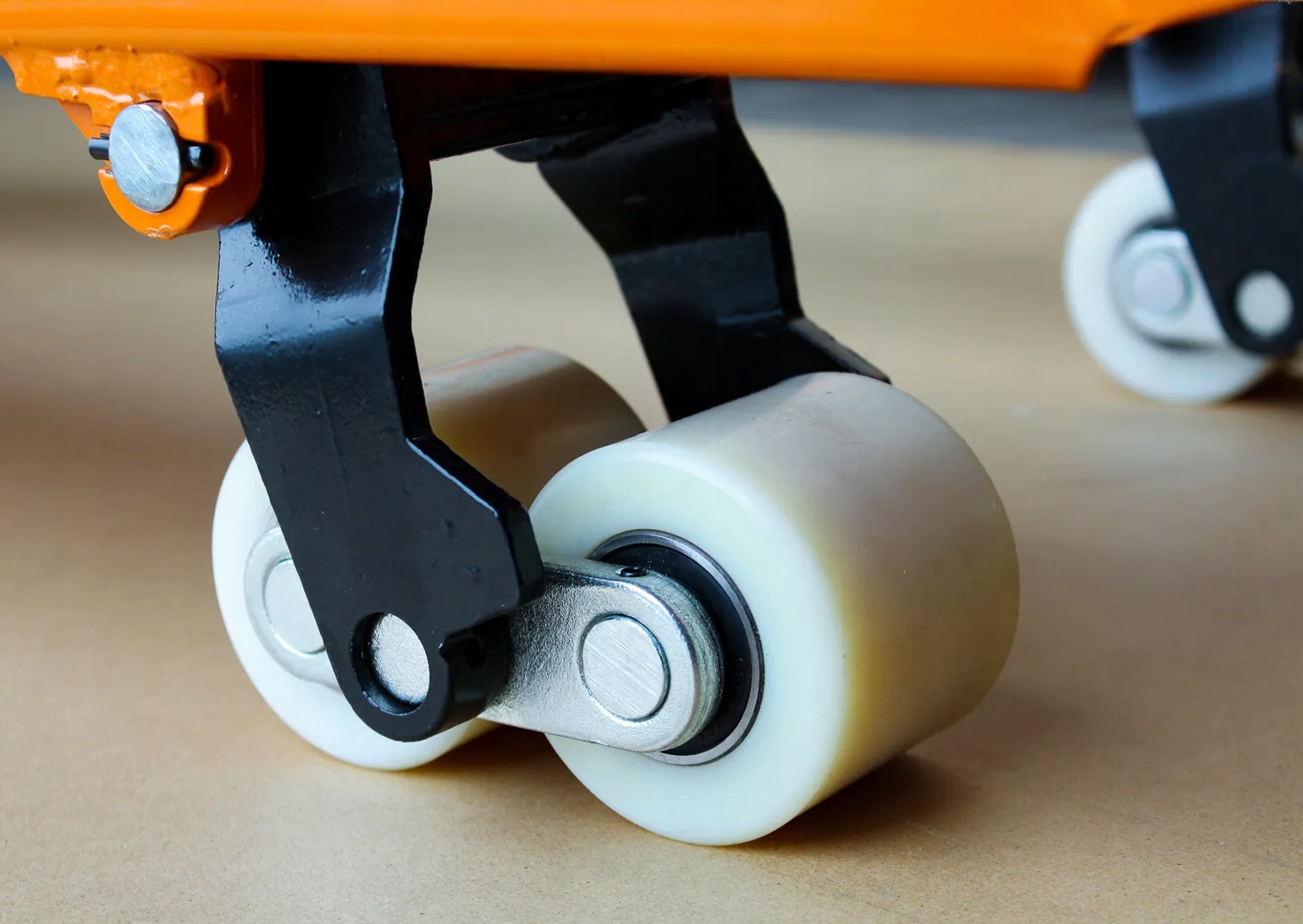- Передние колеса и ролики изготовлены из нейлона, что обеспечивает простоту эксплуатации, низкое сопротивление качению и медленный износ. Нейлоновые колеса более тверды и долговечны, а также значительно дешевле в обслуживании.