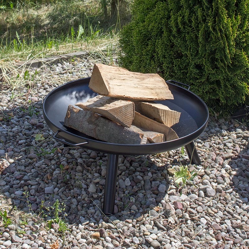 Садовый камин представляет собой глубокую чашу из прочной стали, закрепленную на 3 ножках, которые придают ей устойчивость.