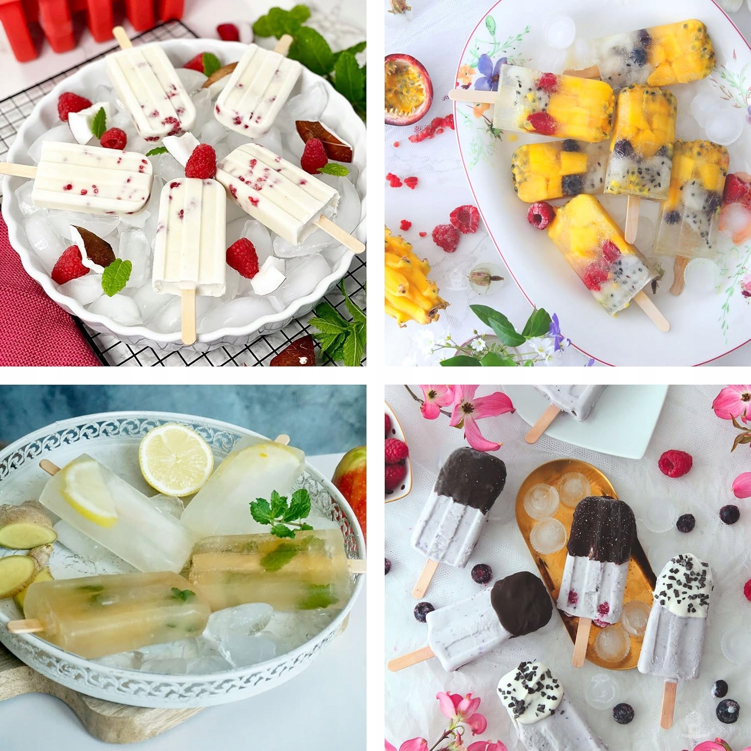 - Легко в использовании, сначала поместите деревянные спатулы в теплой воде в течение по крайней мере часа, затем в глазури и, наконец, в холодильнике в течение нескольких часов, а также в фрайде, чтобы сделать мороженое на палке.