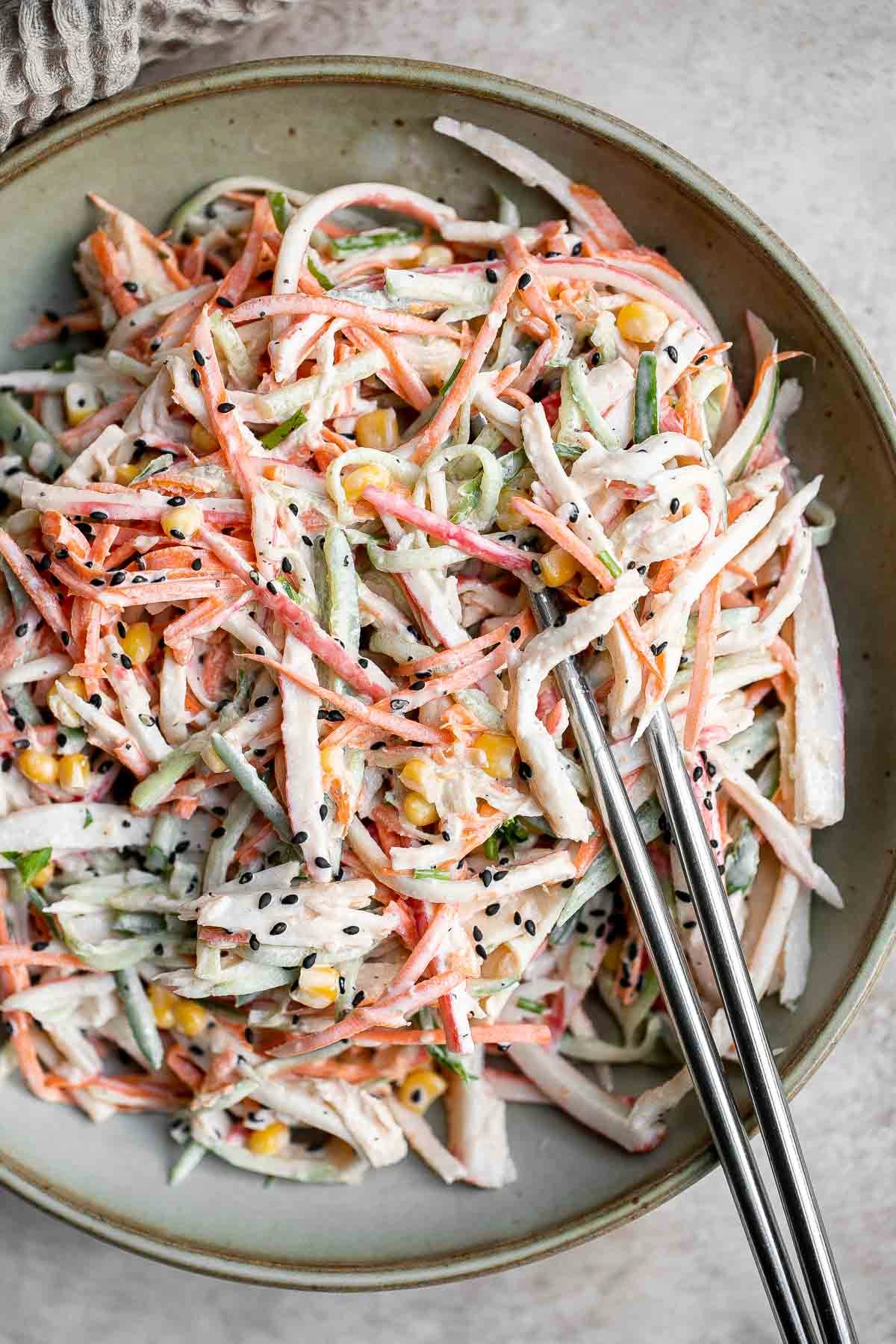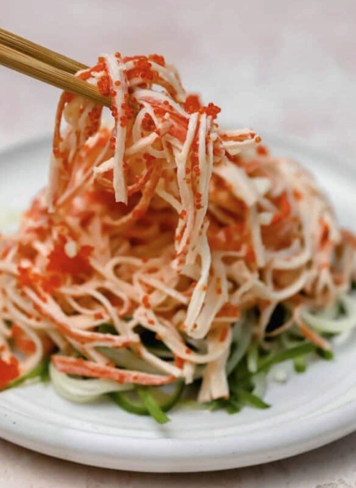 Салат Кани — японский салат с палочками сурими (имитация краба), овощами и сливочной заправкой.