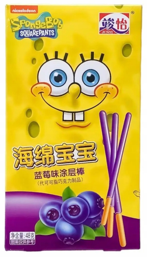 Попробуйте хрустящие фруктовые палочки, покрытые черничной начинкой, напоминающие по форме и вкусу всемирно известные палочки Pocky. Эти палочки были созданы китайской компанией Juni, признанным производителем китайских сладостей и сладостей. Вкусные, хрустящие палочки, залитые черничной глазурью на основе белого шоколада. У них одинаковая хрустящая серединка, покрытая чем-то совершенно уникальным – фиолетовым ягодным топпингом. Идеальная закуска для более изысканного вкуса. Все упаковано в коробку, украшенную персонажами мультфильма «Губка Боб Квадратные Штаны». Палочки идеальны в качестве подарка или сладкого перекуса, которым можно поделиться с близкими и друзьями, а образ Губки Боба наверняка вызовет улыбку на многих лицах!