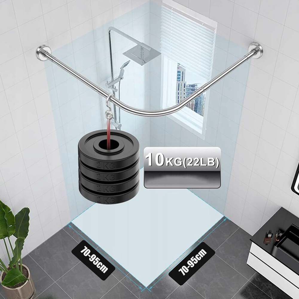🚿 Идеальный размер: стержень для душа регулируется в диапазоне 70-95 см , чтобы соответствовать открытому пространству. Перед покупкой измерьте длину и ширину вашего пространства, эта стойка соответствует размеру 70-95 x 70-95 см. Эта изогнутая душевая палочка легко подвешивать шторы, простой дизайн, экономящее пространство. Подходит для ванной комнаты, душевой кабины, ванны, магазинов одежды, фитинговых комнат, плащных комнат и других. Достаточно прочный, чтобы поддерживать занавески для душа, оконные шторы, одежду и другие предметы, грузоподъемность до 10 кг .