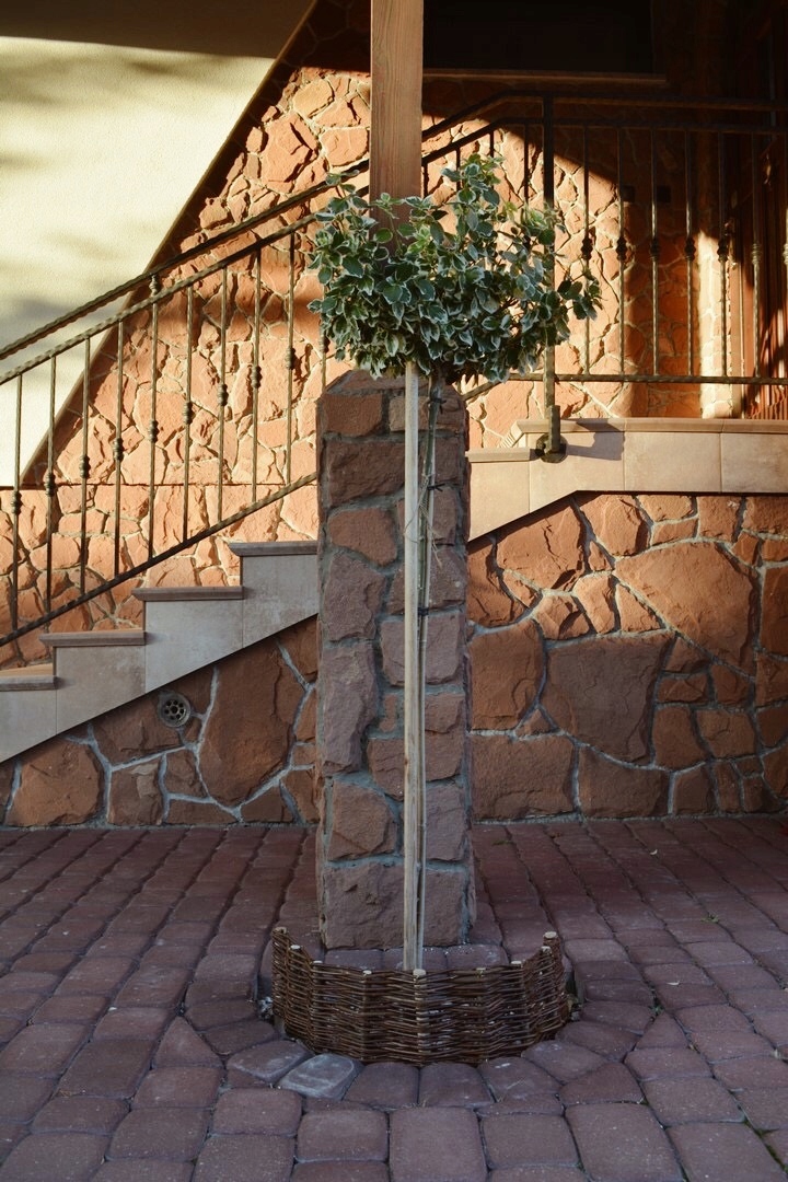Круглые плетеные частоколы лучше всего подходят для защиты кустарников и небольших деревьев. Соединив между собой отдельные части забора, вы создадите вокруг куста круг, который отделит его от газона и, следовательно, от ваших питомцев. Благодаря тому, что вы можете комбинировать любое количество компонентов, вы легко сможете подогнать размер забора под размеры ваших туй или клумб.