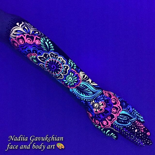 Обладает насыщенным цветом и плотным покрытием. Он может оставаться на теле до первого контакта с водой. Удалите теплым мыльным раствором.