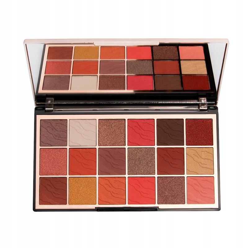 Палитра диких животных - Fierty Brand Makeup Revolution. Палитра теней для век. Он состоит из 18 прессованных порошков, хранящихся в теплом тоне, и с хорошо продуманной цветовой палитрой. Набор содержит как матовая, жемчужная, так и блестящая отделка. Идеально подходит для повседневного макияжа, а также для больших результатов. Каждый из теней имеет чрезвычайно интенсивный пигмент, который долго остается на веке, не оставляя полосы и пятна, а также оттенка. Целое было помещено в твердую упаковку с мотивом животного и зеркалом под закрывающей крышкой.