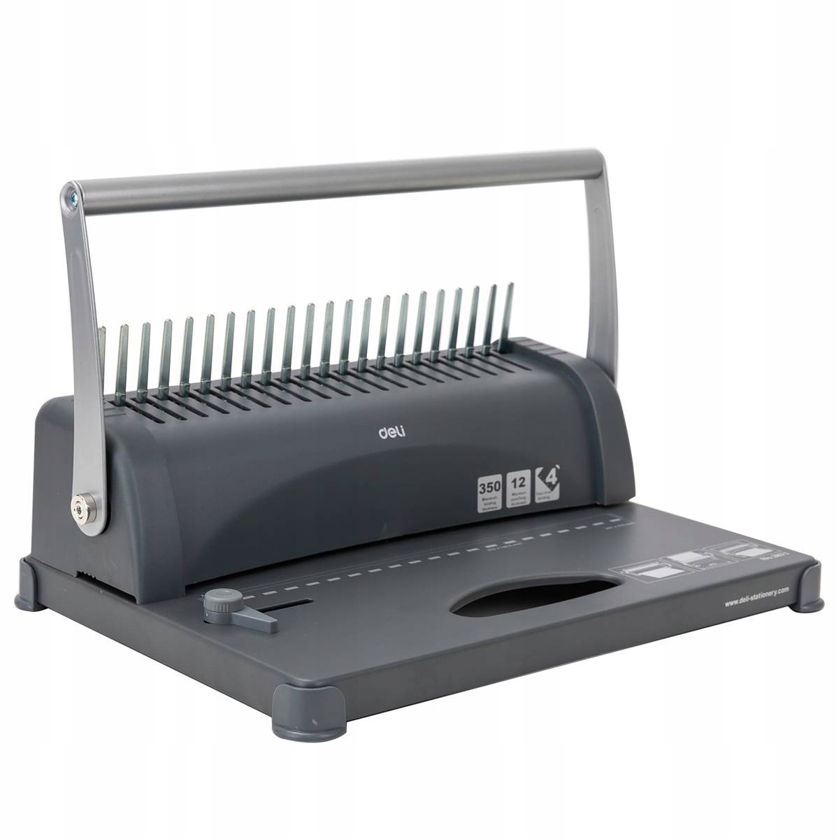 Просто Универсальная переплетная машина Deli E3871. Эргономичный дизайн позволяет переплетать до 350 листов бумаги. Он позволяет пробивать отверстия до 12 листов бумаги одновременно. Он также оснащен специальным контейнером для мусора, который поможет поддерживать порядок на рабочем месте.