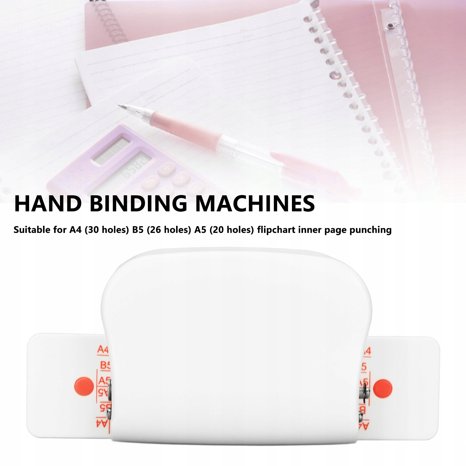 4. Широкое применение: Переплетные машины подходят для перфорации внутренних страниц флипчартов формата А4 (30 отверстий), В5 (26 отверстий), А5 (20 отверстий).