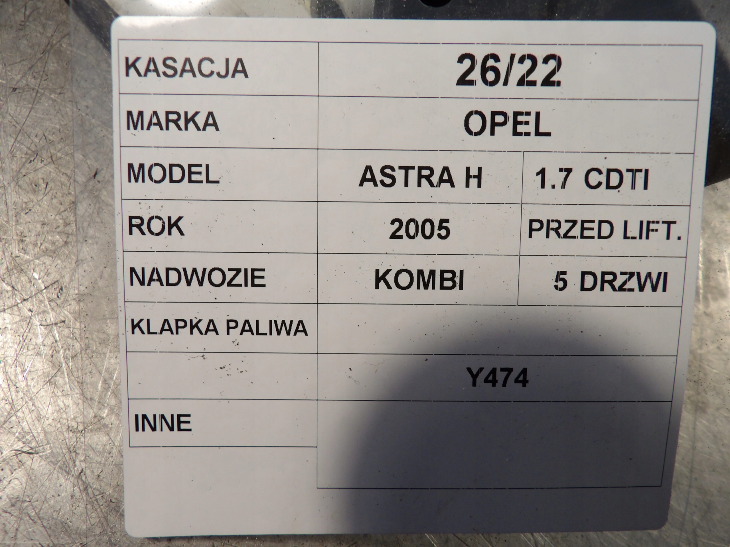 Паливна кришка Opel Astra H універсал Y474