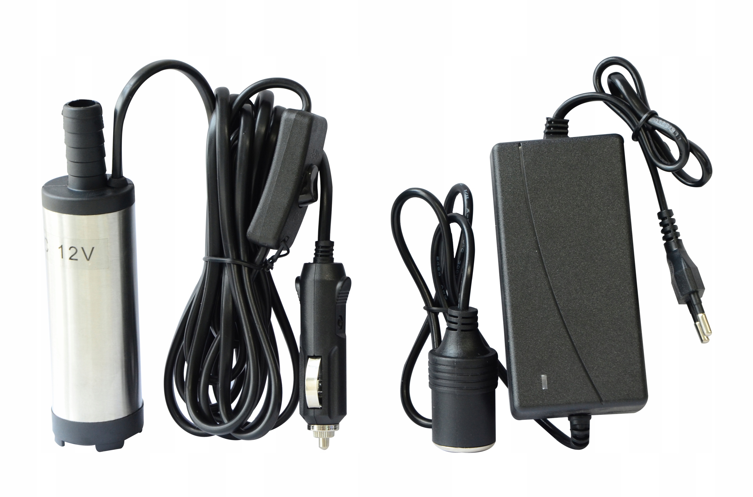 В зависимости от необходимости насос может быть подключается напрямую к установке 12В с помощью вилки в розетку прикуривателя или к установке.Питание от сети 230В с помощью блока питания, входящего в комплект.