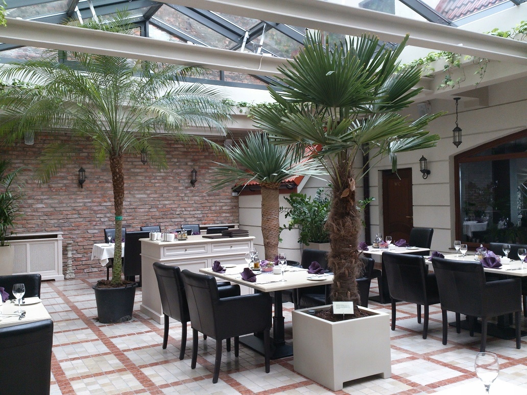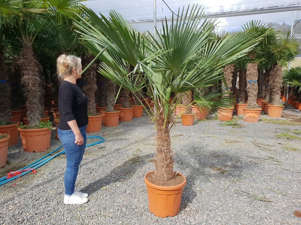 предлагается -trachycarpus fortunei -это несколько с пальмами, которые подходят снаружи в нашем климате. Поместите в землю, он может справиться с краткосрочным морозом до -16/17 градусов по Цельсию, а также с теплом. При выращивании в горшках пальмы должны быть похоронены максимум -6. Зимой, посаженной в землю, конечно, он нуждается в зимней защите в виде нагревательного кабеля и непрерывной ткани. Очень важной информацией является тот факт, что Fortunei Trachycarpus не является внутренней ладонь. эта ладонь имеет естественным образом коричневые кончики листьев. пальцы листьев обычно нарушаются ветром, благодаря которого, что больше слышно с более высокими копиями, они приятно развевают на ветру. Согнутые коричневые кончики листьев не являются недостатком, а неразделимым элементом жизни Trachycarpus