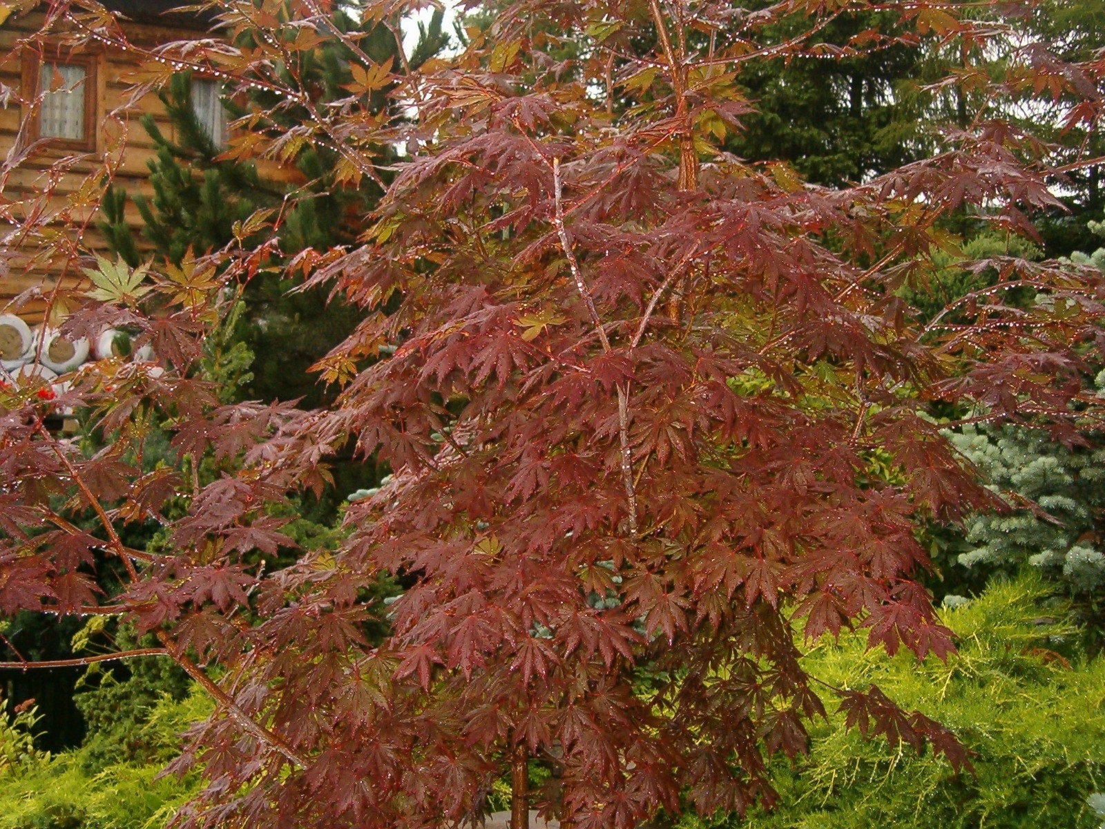 Кленовая пальма родом из Японии, Кореи и восточного Китая. Хотя на родине он достигает 10 м в высоту и такой же ширины, в Европе он обычно не превышает нескольких метров. Радует нежными, филигранными листьями, в зависимости от сорта, розовыми, фиолетовыми, кремовыми, красно-белыми, желто-зелеными, красно-зелеными, живописной зонтичной формой. Цветы — не самая сильная сторона этих растений, но кто думает о цветах, когда видит такую необыкновенную листву? Если добавить богатство форм, размеров и форм отдельных сортов, то получим разнообразие, в котором сложно не заблудиться. Пальмовые клены – как и положено редкостям – тоже дороги и требовательны. Они украсят наш сад только в том случае, если мы будем за ними правильно ухаживать. Не любят влажных мест, хорошо себя чувствуют на перегнойных, слабовлажных, кислых почвах. Однако, что важно, если они растут слишком интенсивно в слишком плодородной почве, концы побегов к зиме недостаточно одревесневают и подмерзают. Корневая система этих растений неглубокая, поэтому помимо полива им необходимо еще и мульчирование, защищающее почву от чрезмерного испарения.