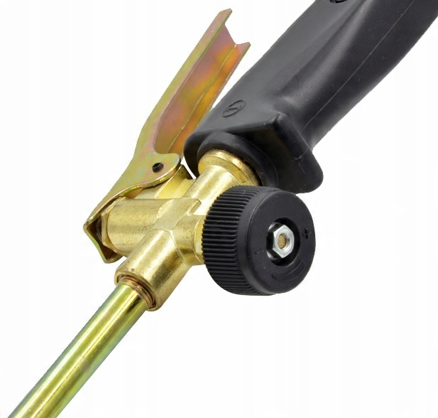 Рукоятка горелки имеет клапан, позволяющий плавно регулировать температуру пламени, и клапан, регулирующий размер пилотного пламени.
