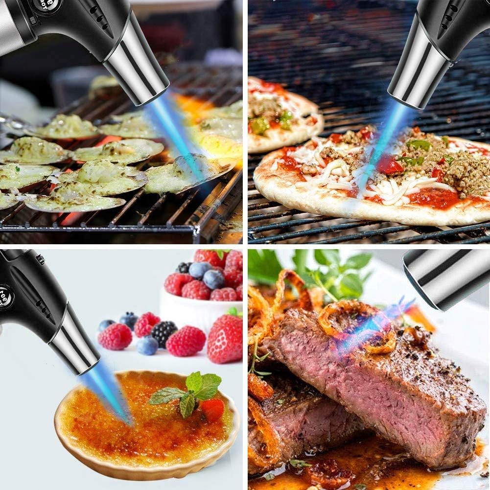 Применение в гастрономии. помимо десертов: например, поджигание алкогольных коктейлей, курение еды или быстрое нагревание ингредиентов.